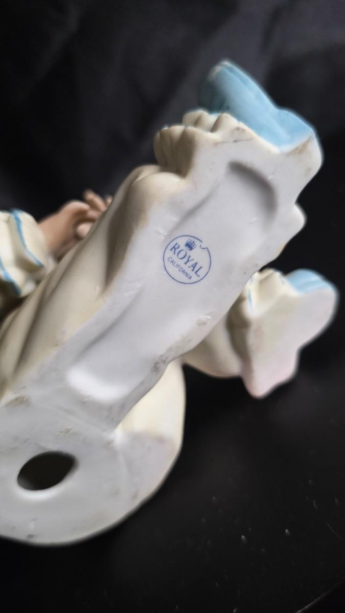 Step into a softer, nostalgic era with this vintage Royal California porcelain clown figurine, a beautifully detailed bisque collectible that captures both innocence and melancholy in one tender expression.