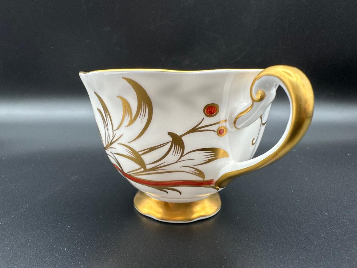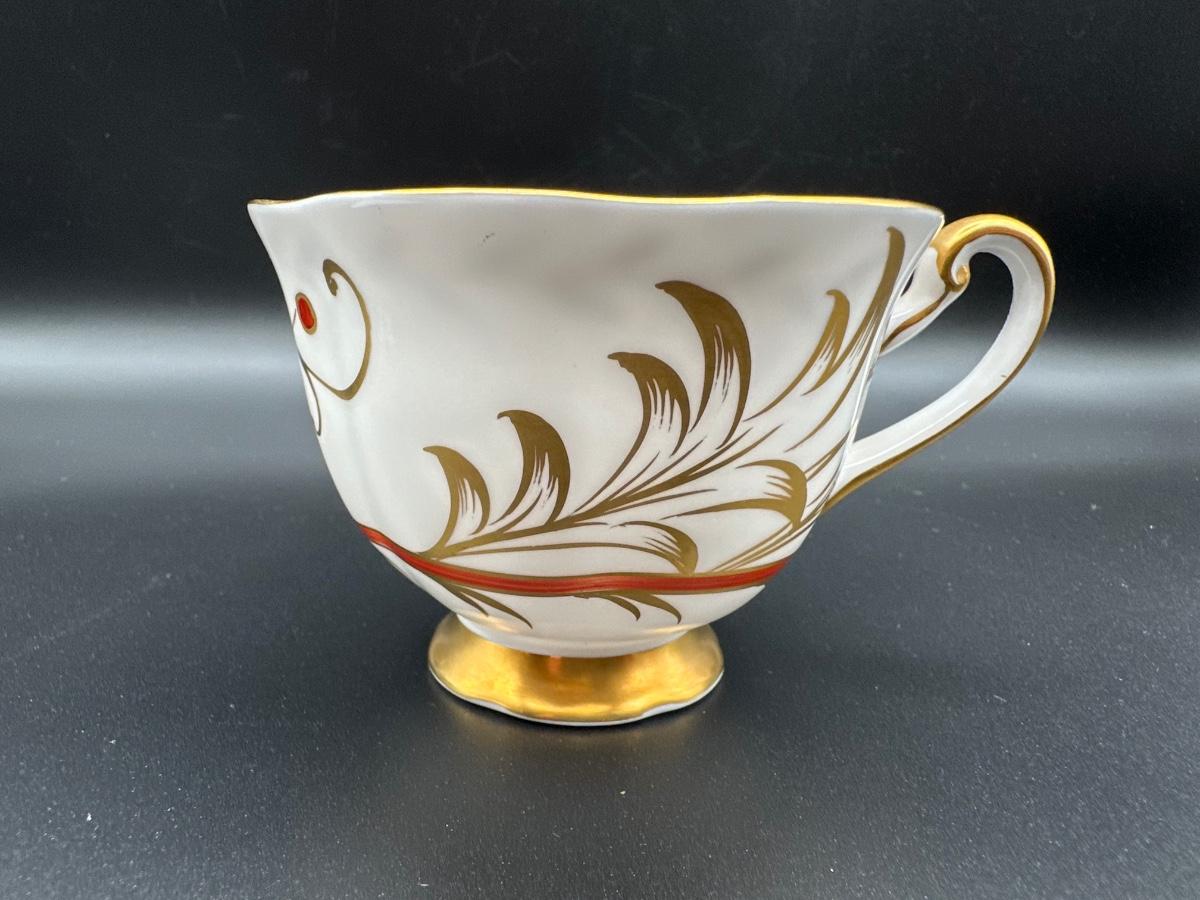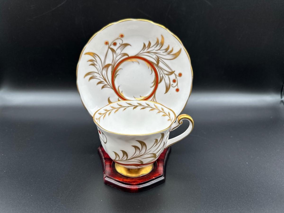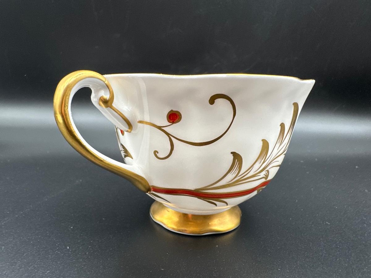 Vintage Royal Chelsea Gold Floral Cup and Saucer Red Flowers Made in England, English Bone China Teacup.