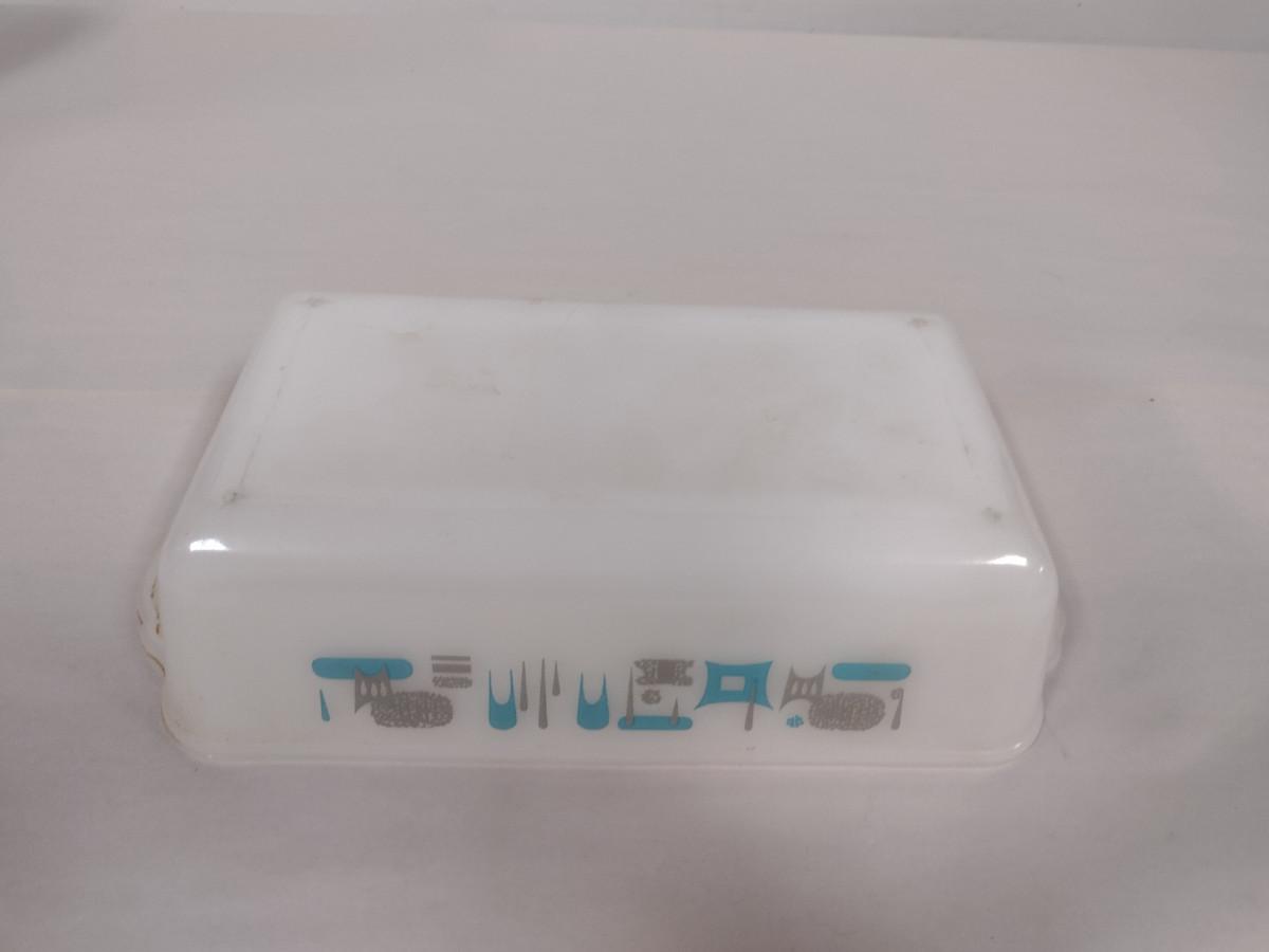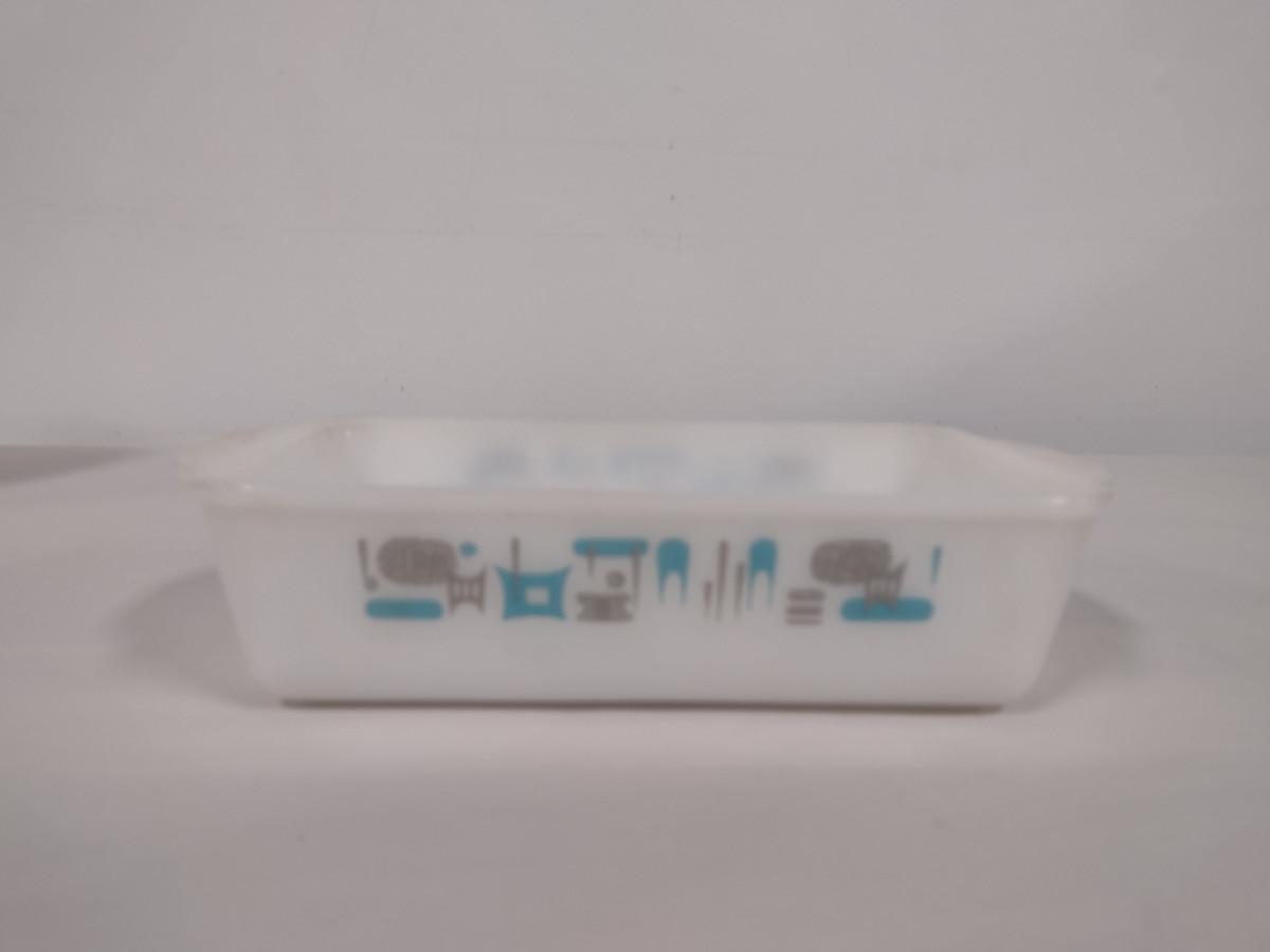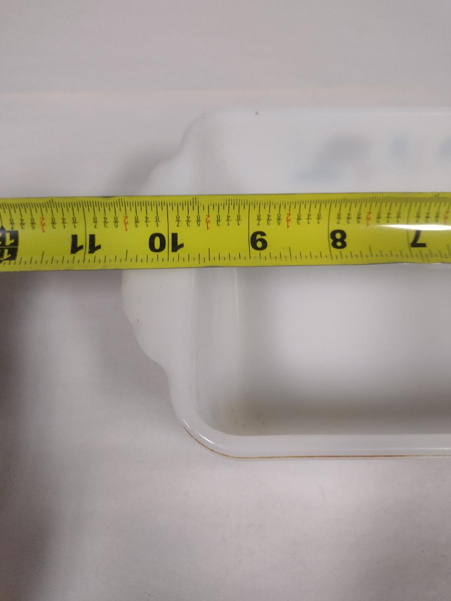 Vintage Royal China Milk Glass Bread Pan- Blue Heaven Pattern (Choice A). Item needs cleaning- has baked on residue.