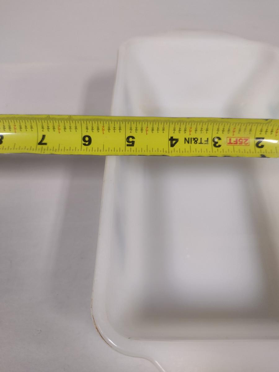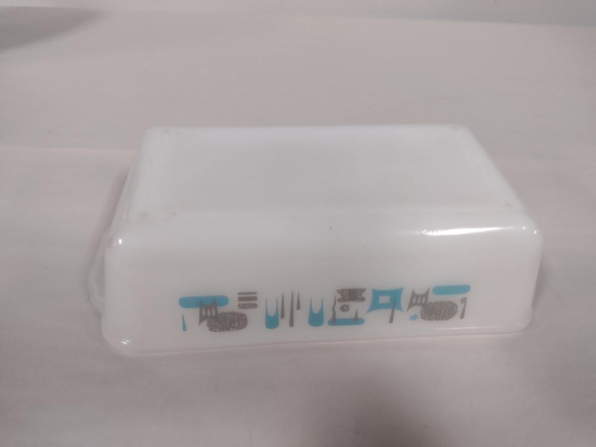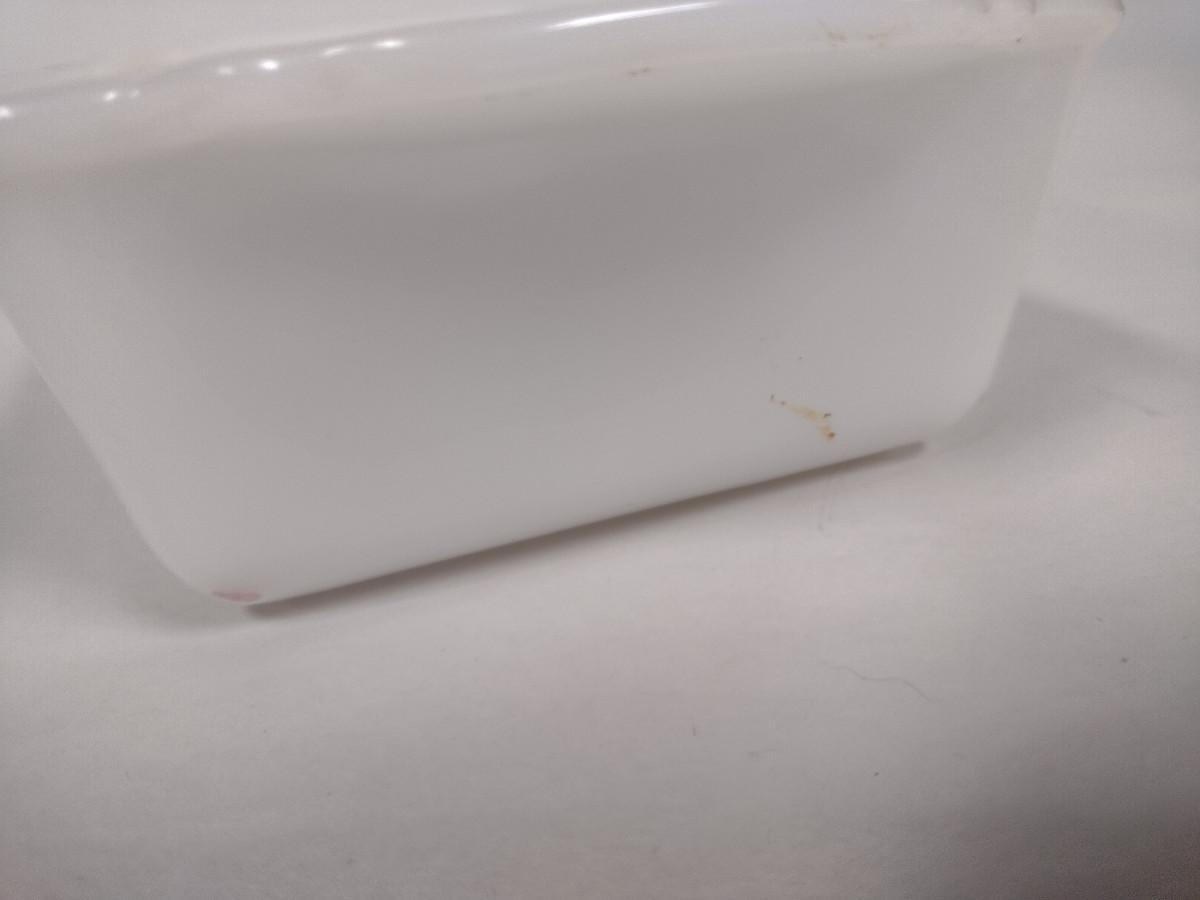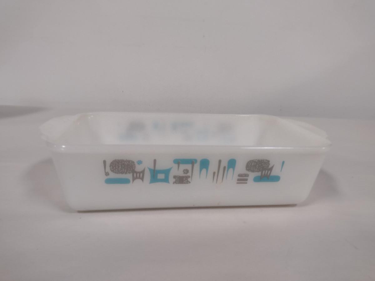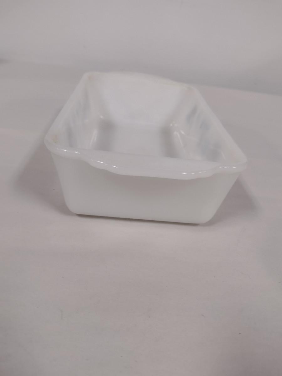 Vintage Royal China Milk Glass Bread Pan- Blue Heaven Pattern (Choice B). Item needs cleaning- has baked on residue.