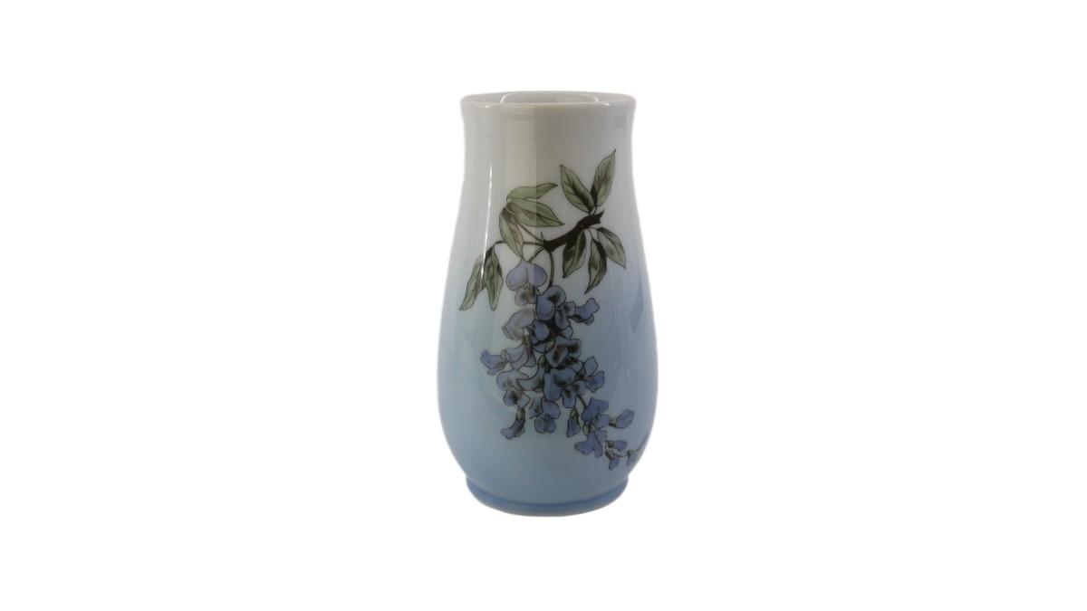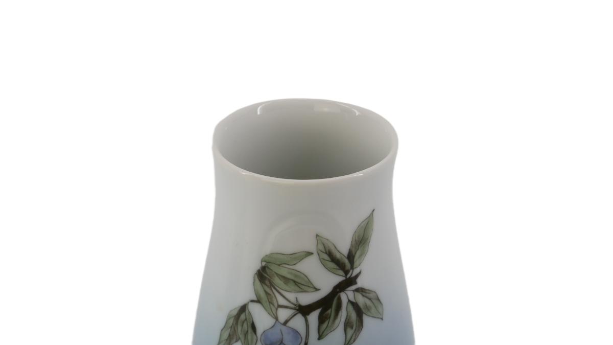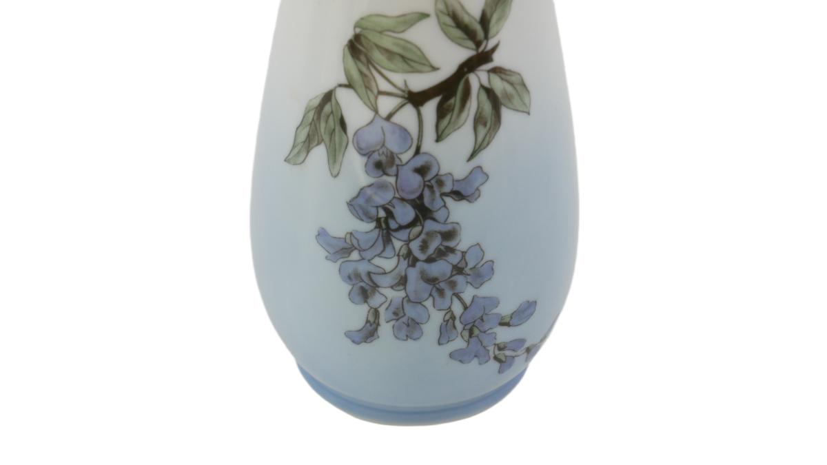 Vintage Royal Copenhagen Denmark porcelain vase with flower design. No visible issues found. Marked, signed, and numbered on the bottom. Measures L 4" x H 7". Weighs 15 oz. (C18)