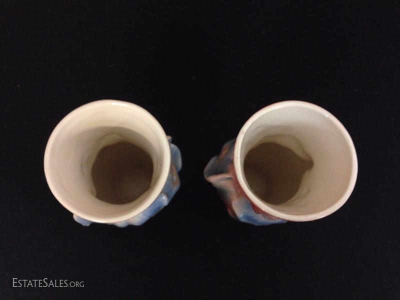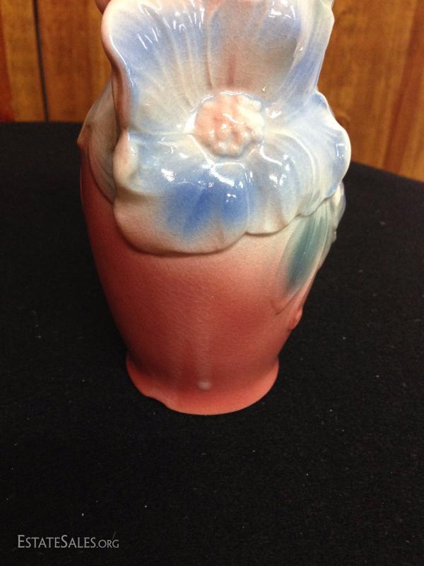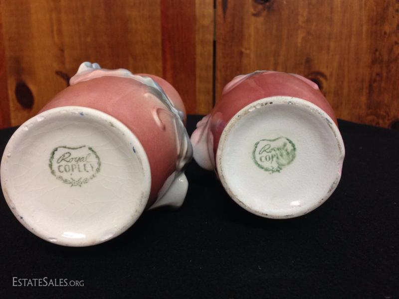 Very nice vintage Royal Copley 7 Inch Vases Green & Blue Floral design with marking. Please view photos at full screen size for best detail.
