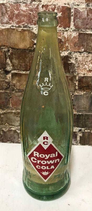Here is a vintage one pint glass Royal Crown Cola bottle...Applied color label...