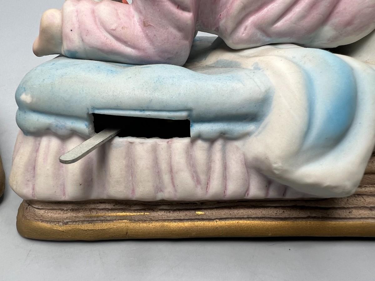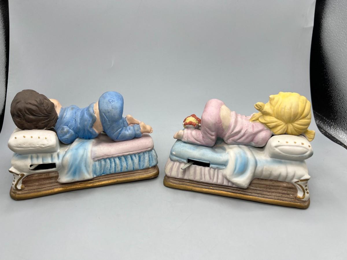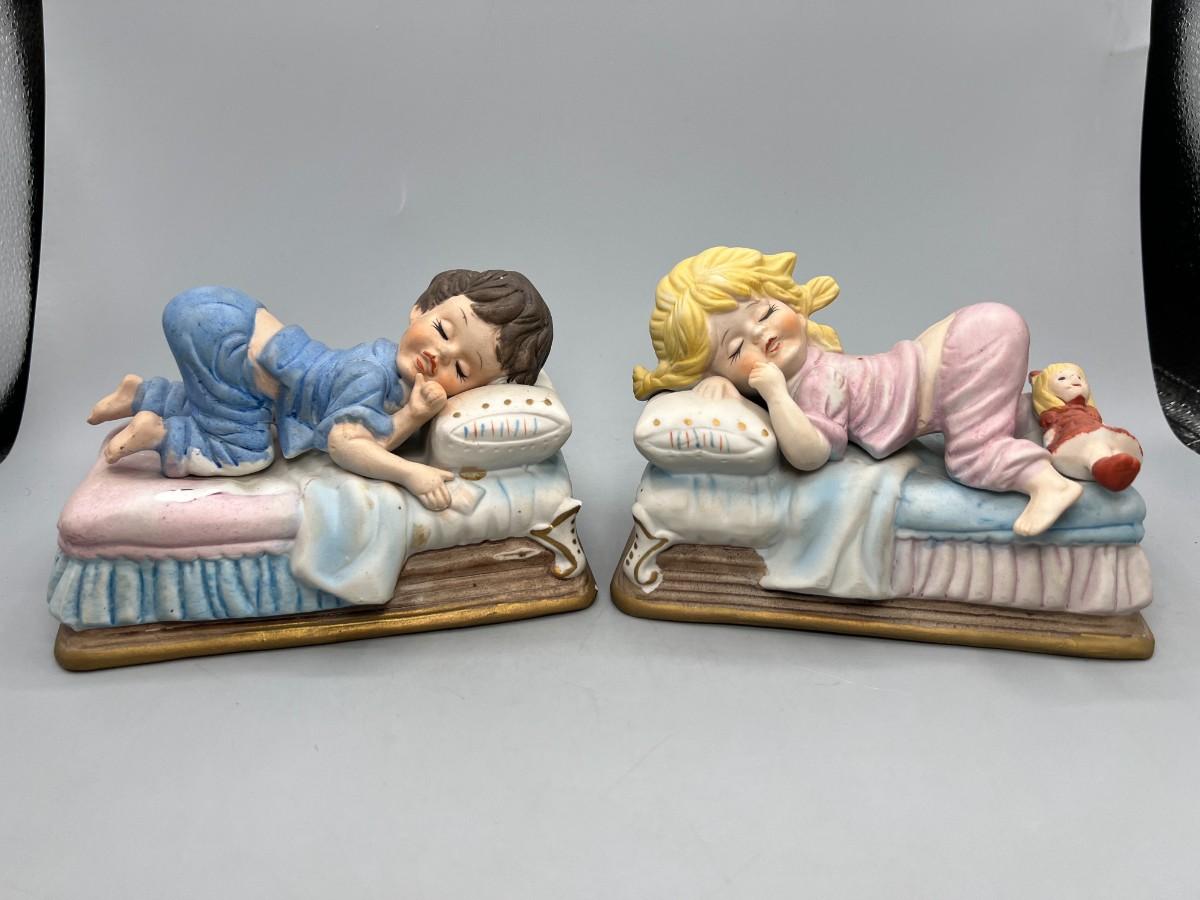 Vintage Royal Crown Music Box Complementary Pair Sleeping Boy & Girl Figurines