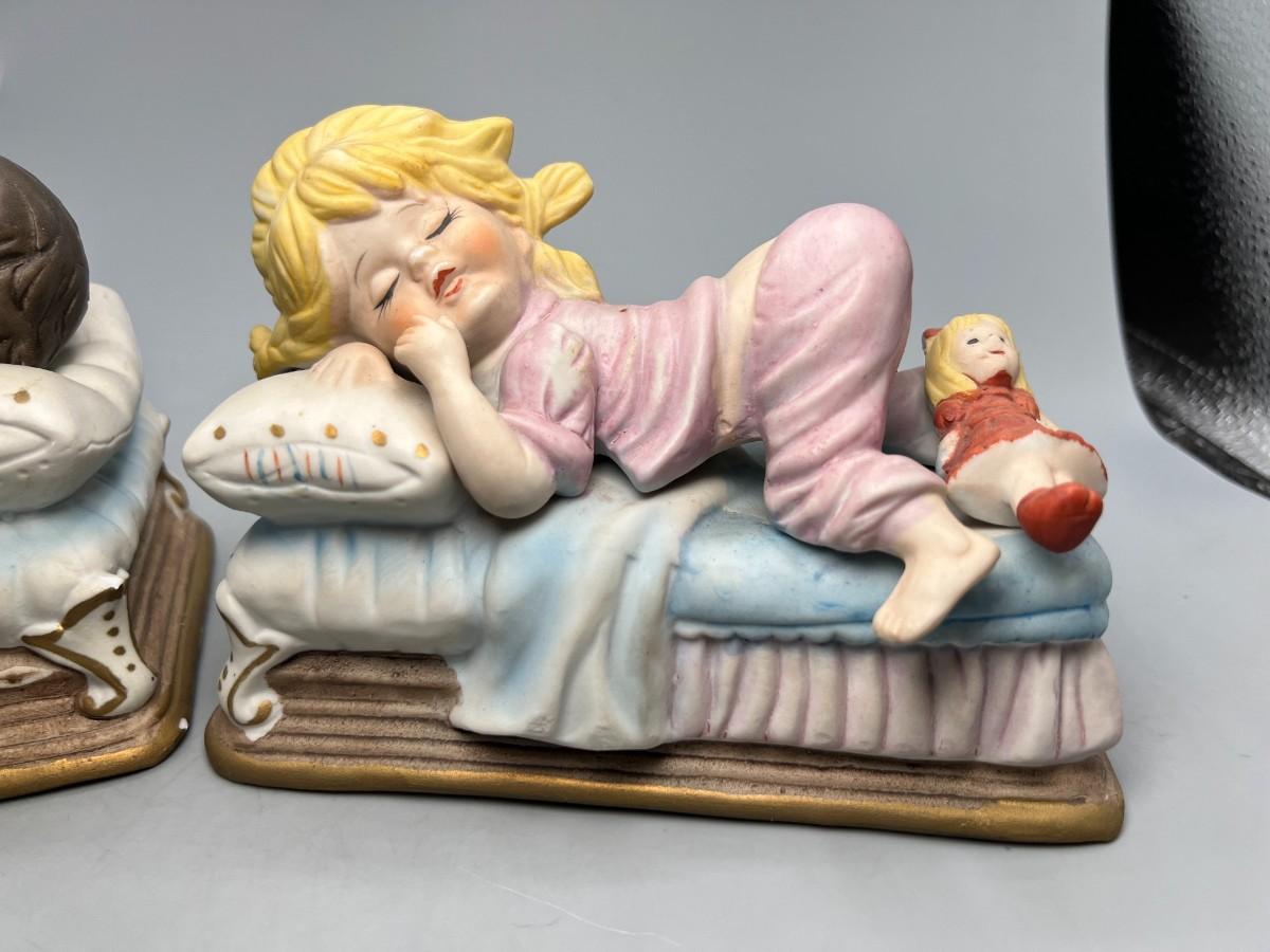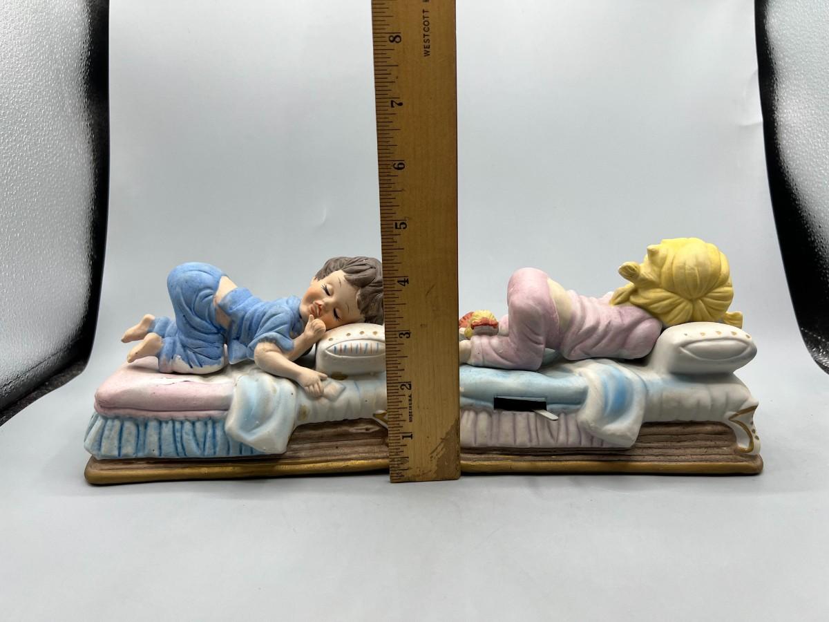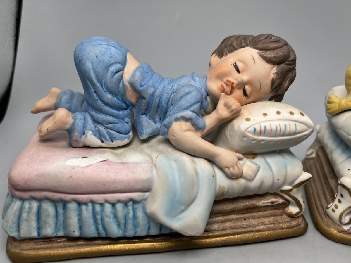 Vintage Royal Crown Music Box Complementary Pair Sleeping Boy & Girl Figurines