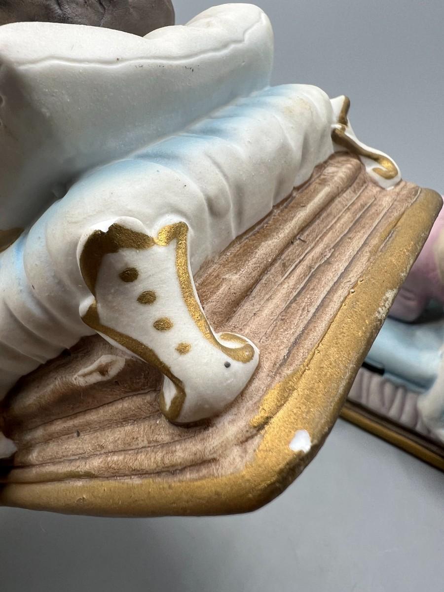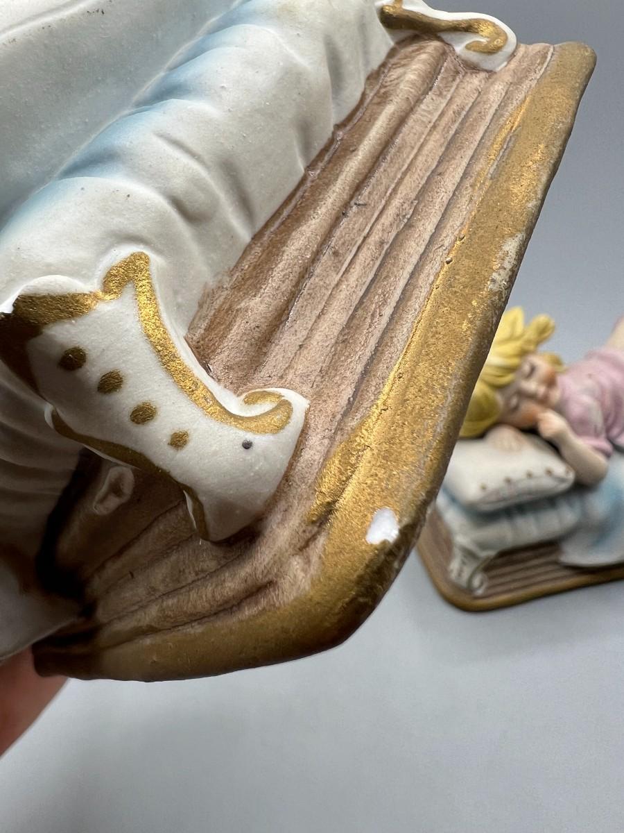 There is a light chip on the boy figurine, but there is no significant damage to either of the figurines and in good collectible condition.
