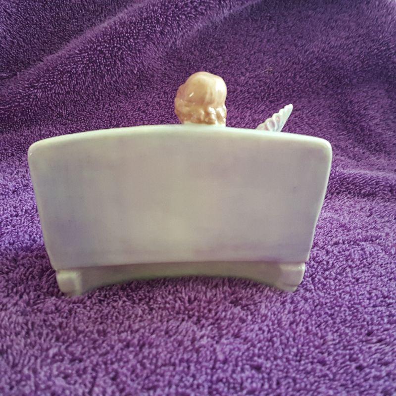 This auction lot is for a really cool Vintage Royal Doulton Tchotchke Lady with Fan on Settee. This well-marked English-made vintage piece measures about 5-inches long by 3-inches wide by 3-inches tall. Just right for an empty niche in your display cabinet.