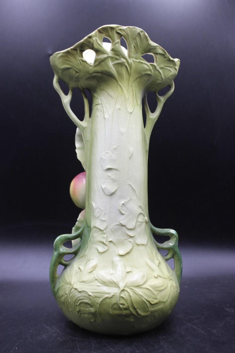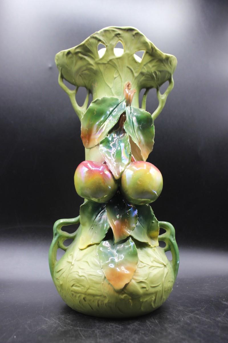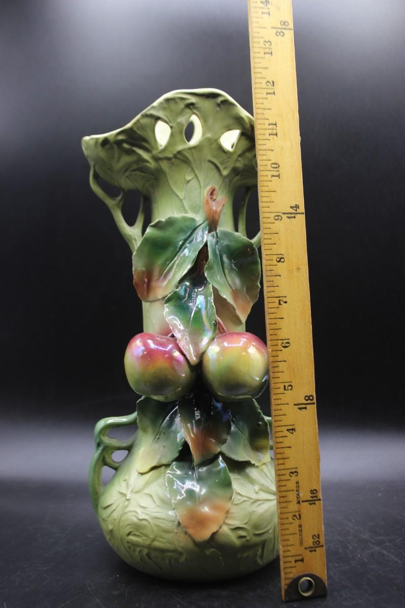 Vintage Royal Dux Ceramic Cherry and Foliage Art Vase, there are no cracks or chips to the vase and is in good vintage condition. Check pictures for more details and for sizing.