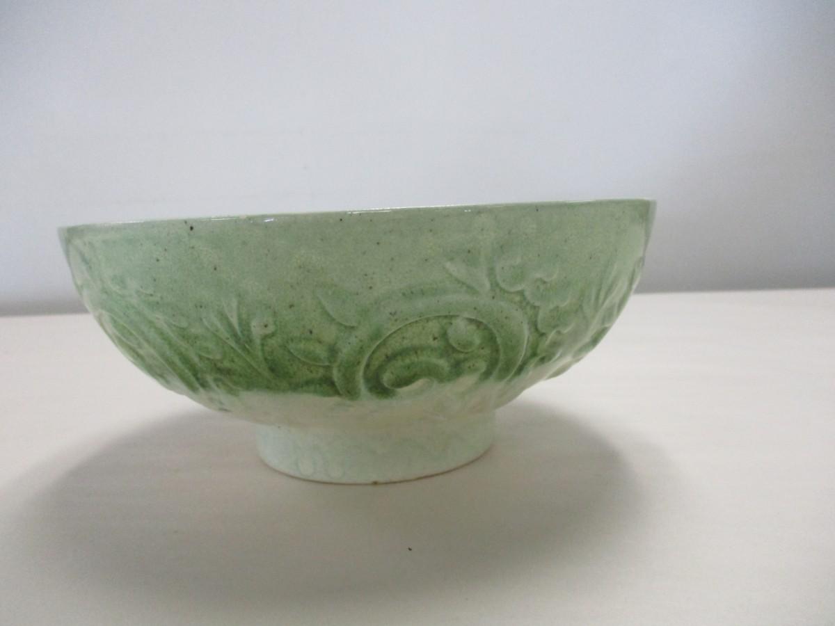 Vintage Royal Haegar Pottery Bowl Scroll Green/Cream