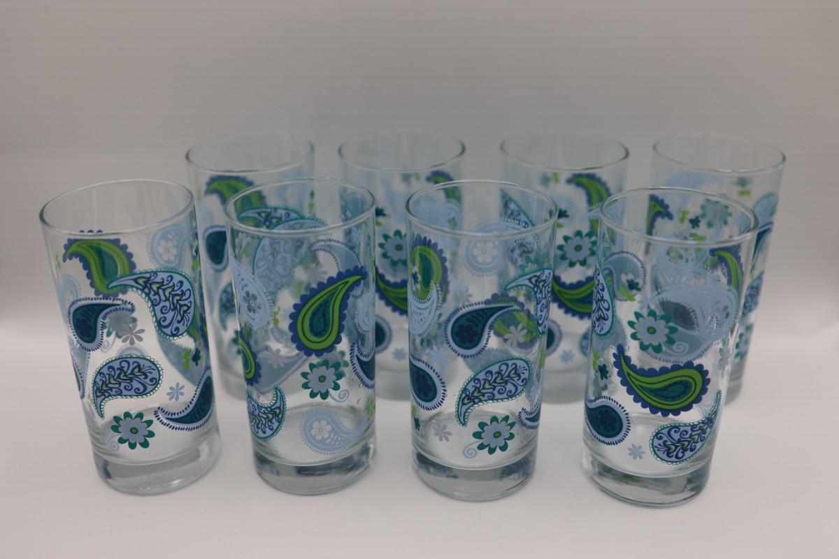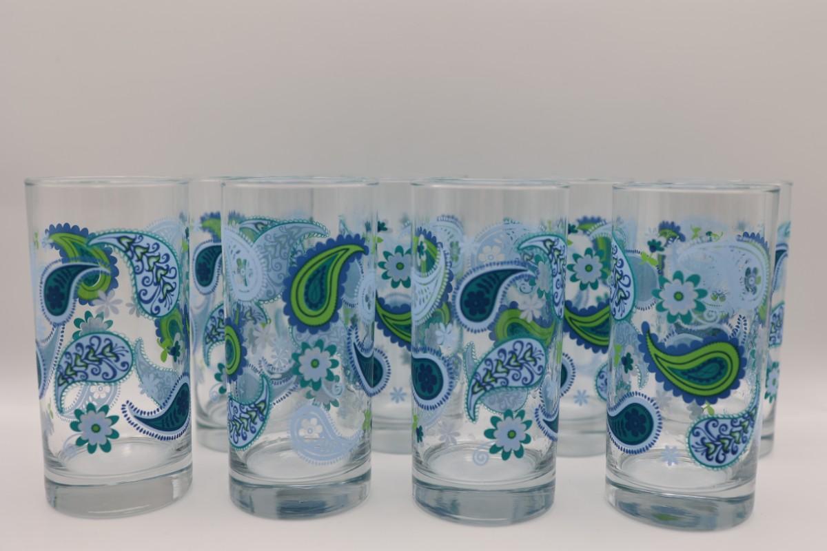 Vintage Royal Norfolk, CRISA Paisley Glass Tumblers - Set of Eight (8)