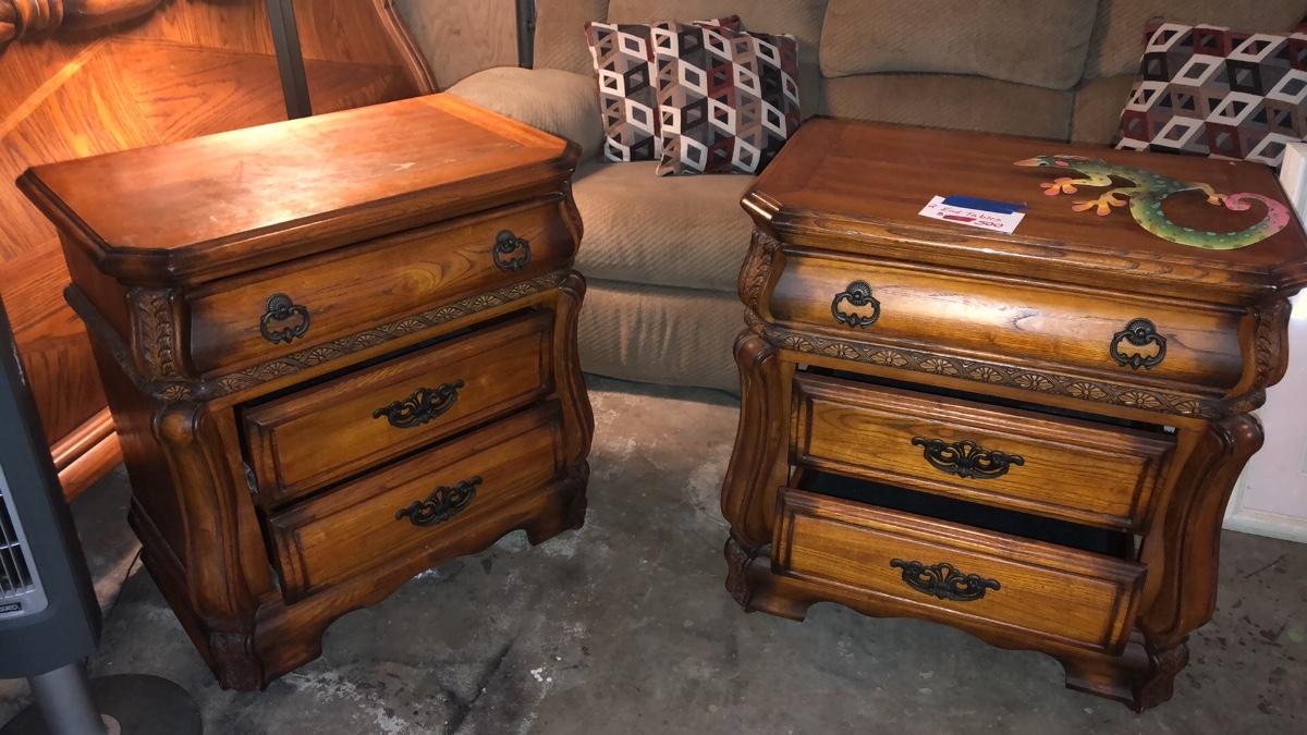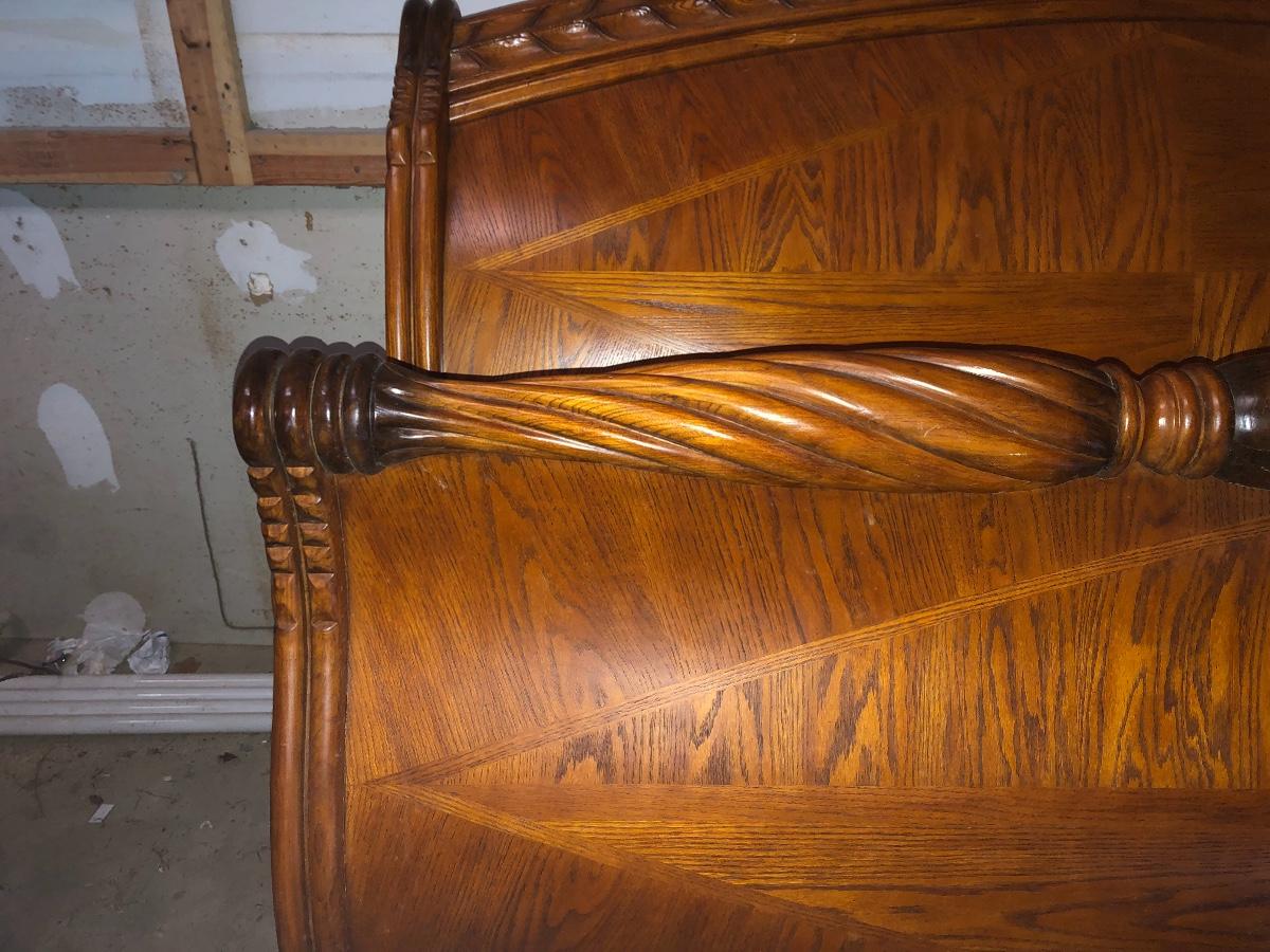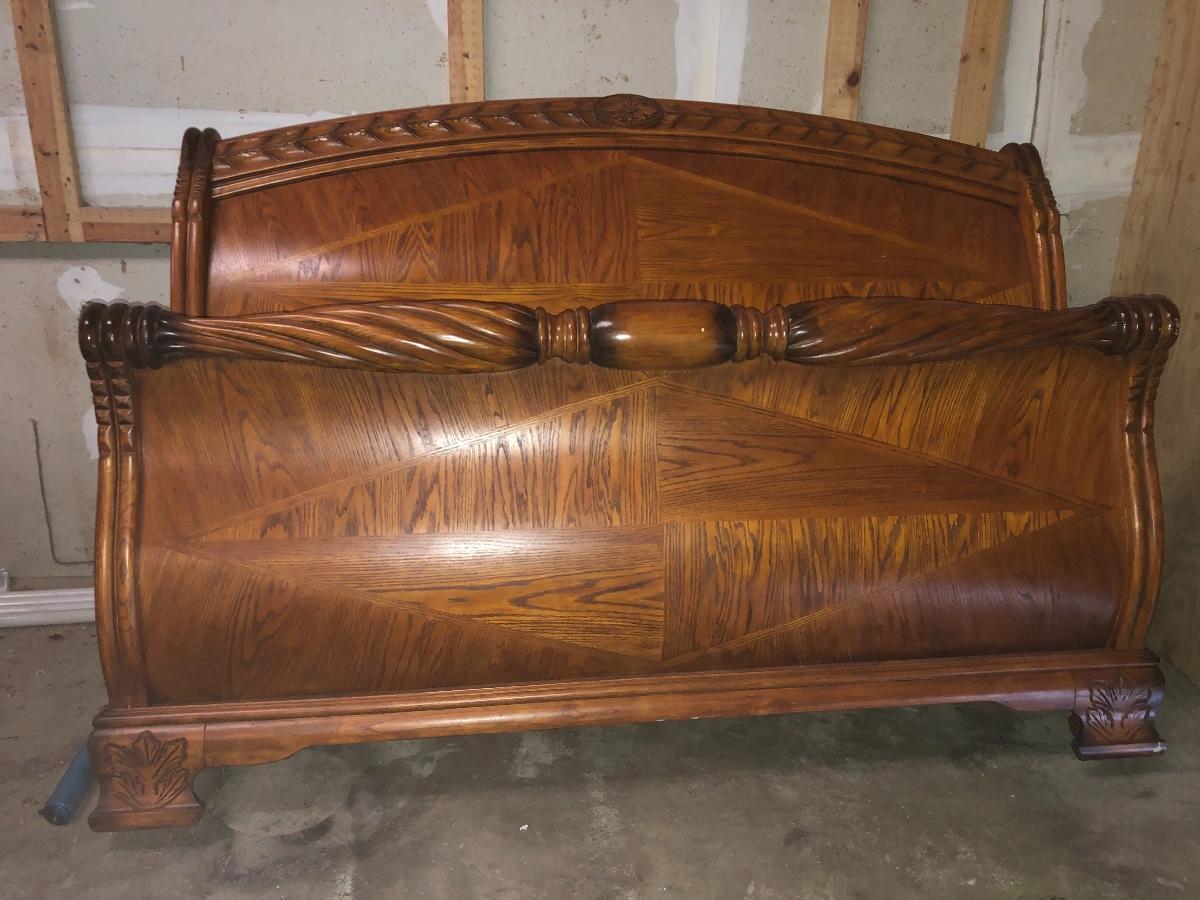Vintage royal oak king sleigh bed with 2 nightstands and armoire/entertainment center