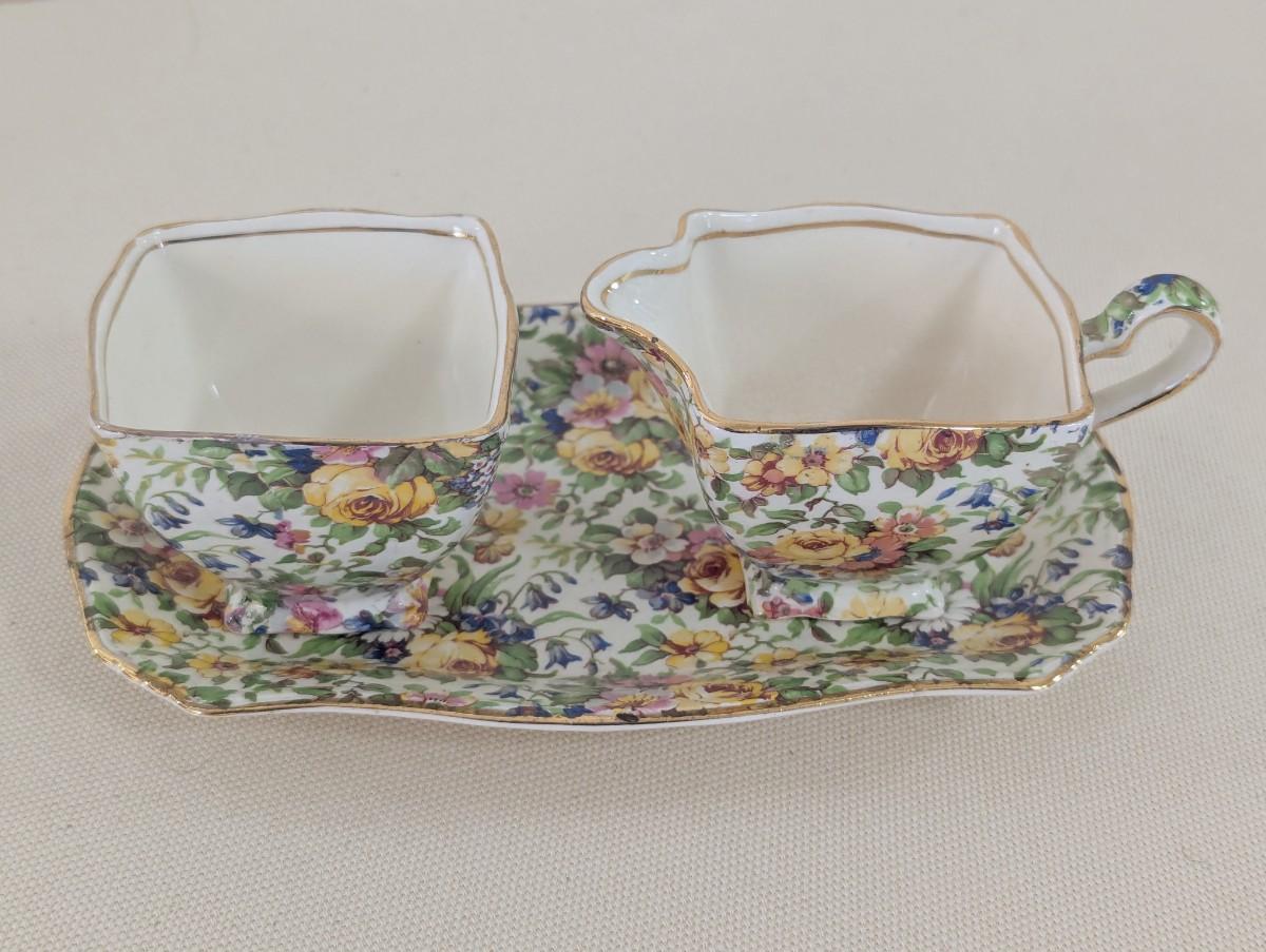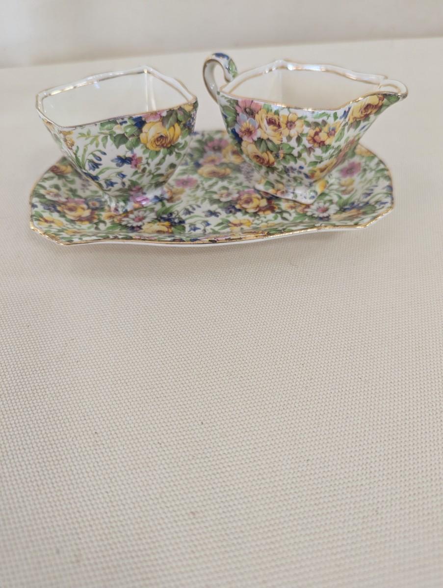 Vintage Royal Winton Grimwades England Floral Sugar & Creamer With Tray (LR)