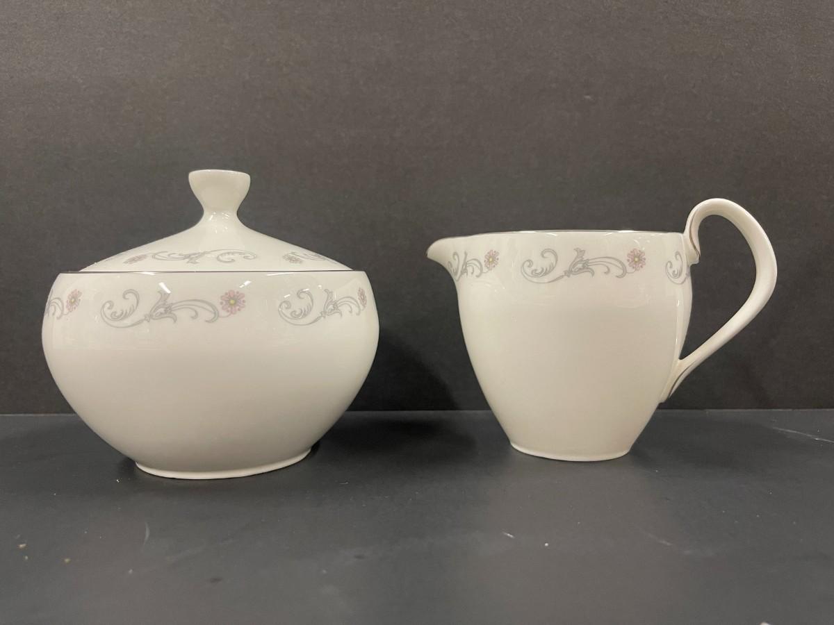 Vintage Royal Worcester china sugar and creamer, Bridal Lace. Each piece is in excellent condition. Sugar bowl is 4" x 4" and the creamer is 5" x 3 1/2" high.