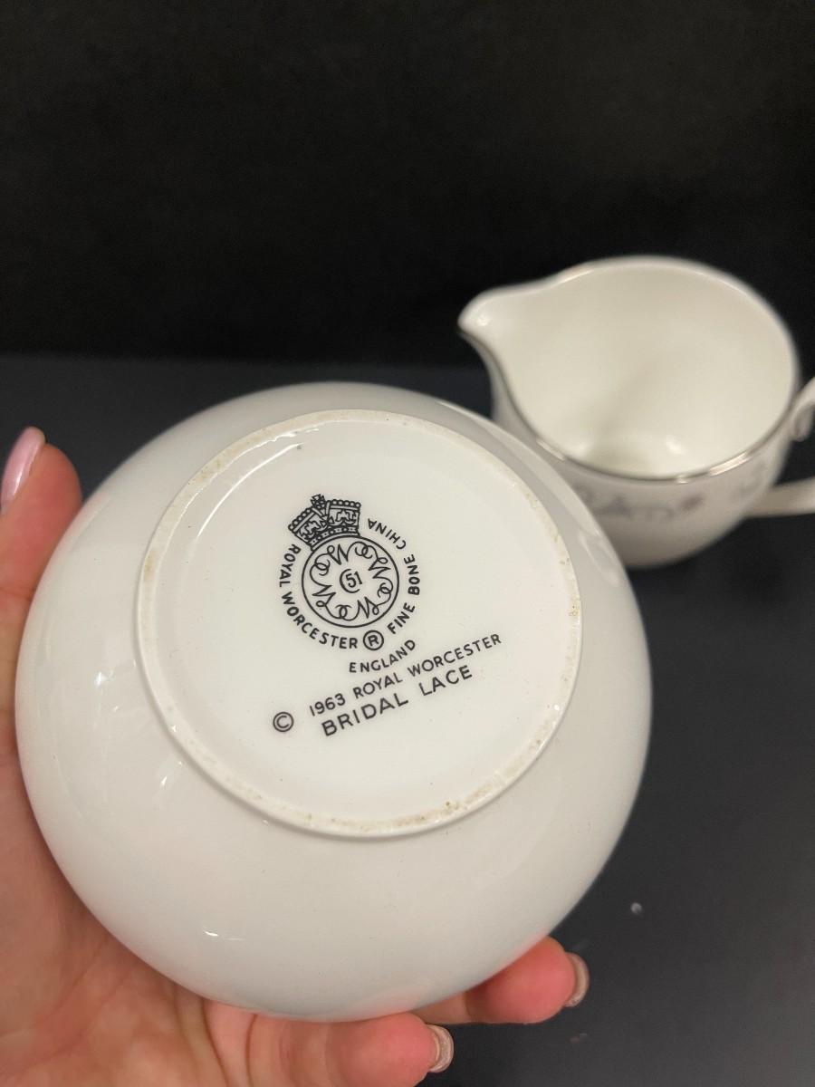 Vintage Royal Worcester China Sugar & Creamer, Bridal Lace