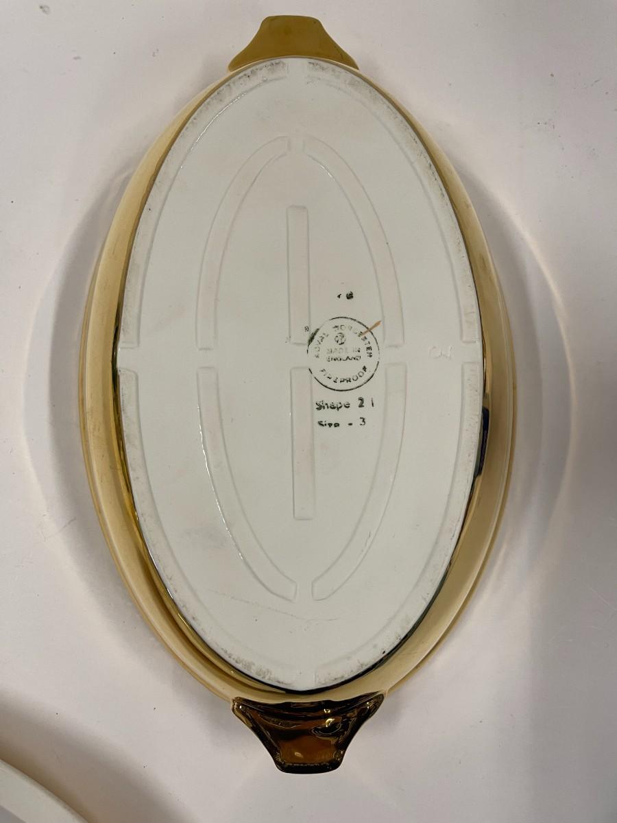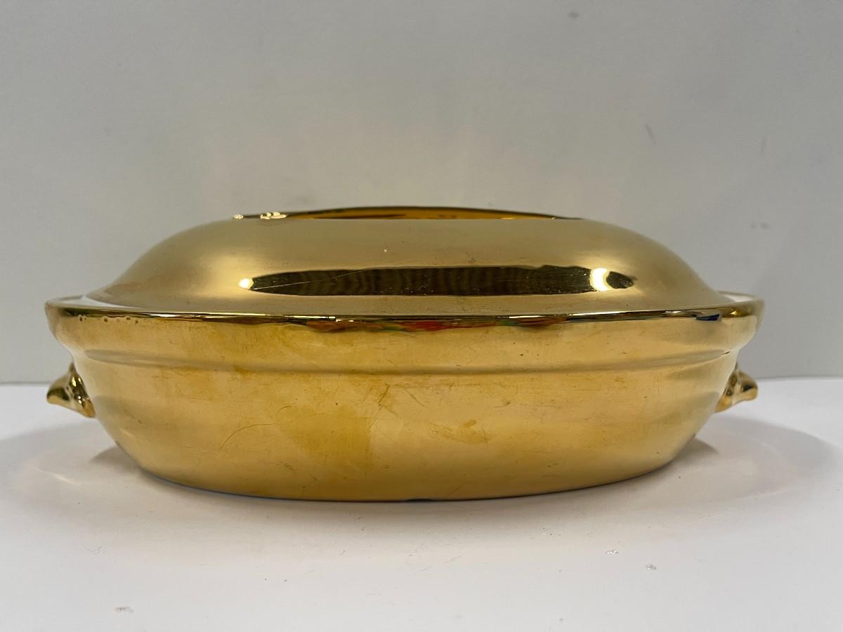 Vintage Royal Worcester Gold Lustre oval entree dish with lid. 9". Please examine photos carefully as there is some wear to the gold on the lid and in a couple of other places on the dish itself. Interior is clean. # 1183