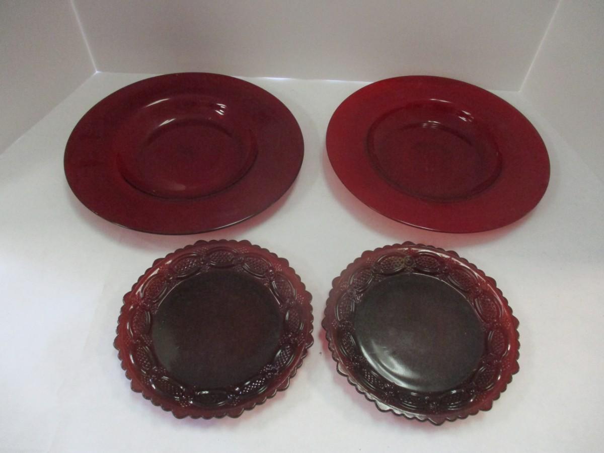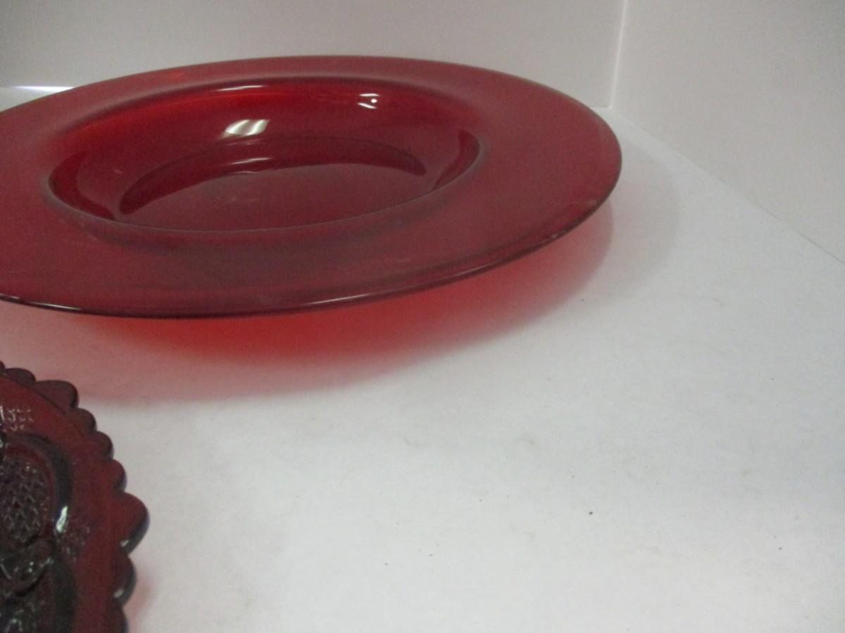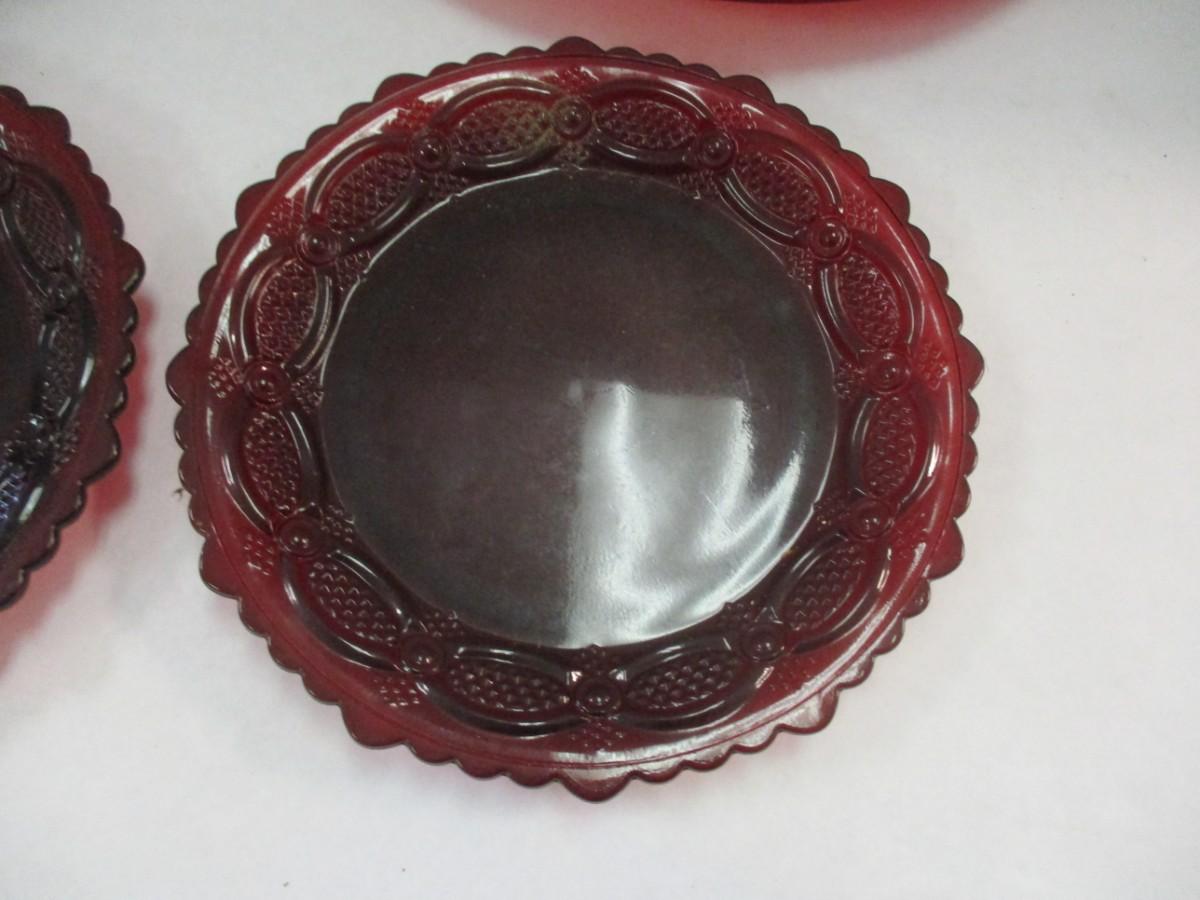 Vintage Ruby Red Murano Style Italian Hand Blown Art Glass Bowls & Avon Cape Cod Ruby Red Small Bread Plates