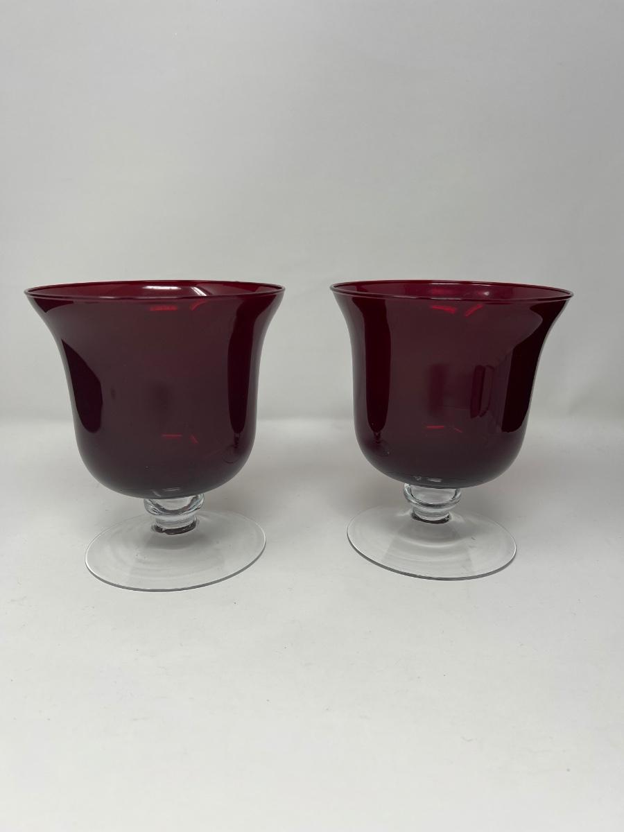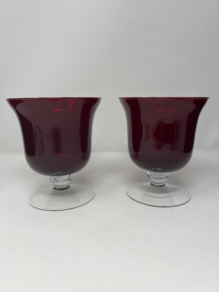 Vintage Ruby Red Pedestal Vases