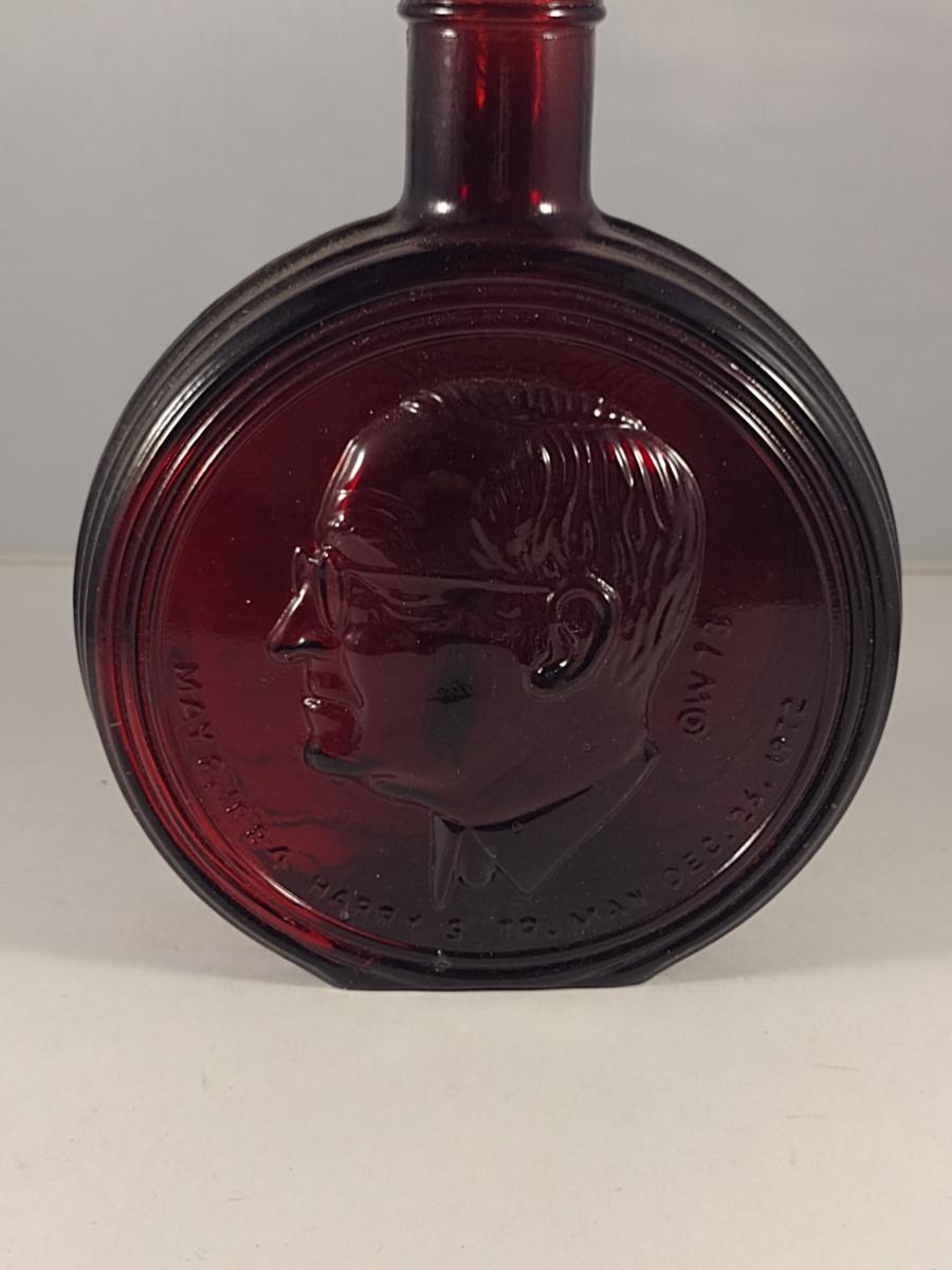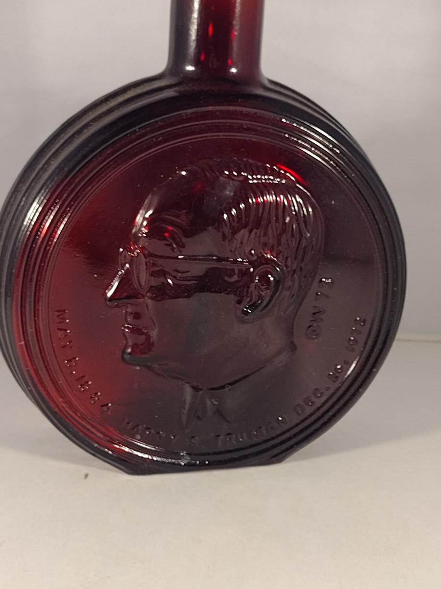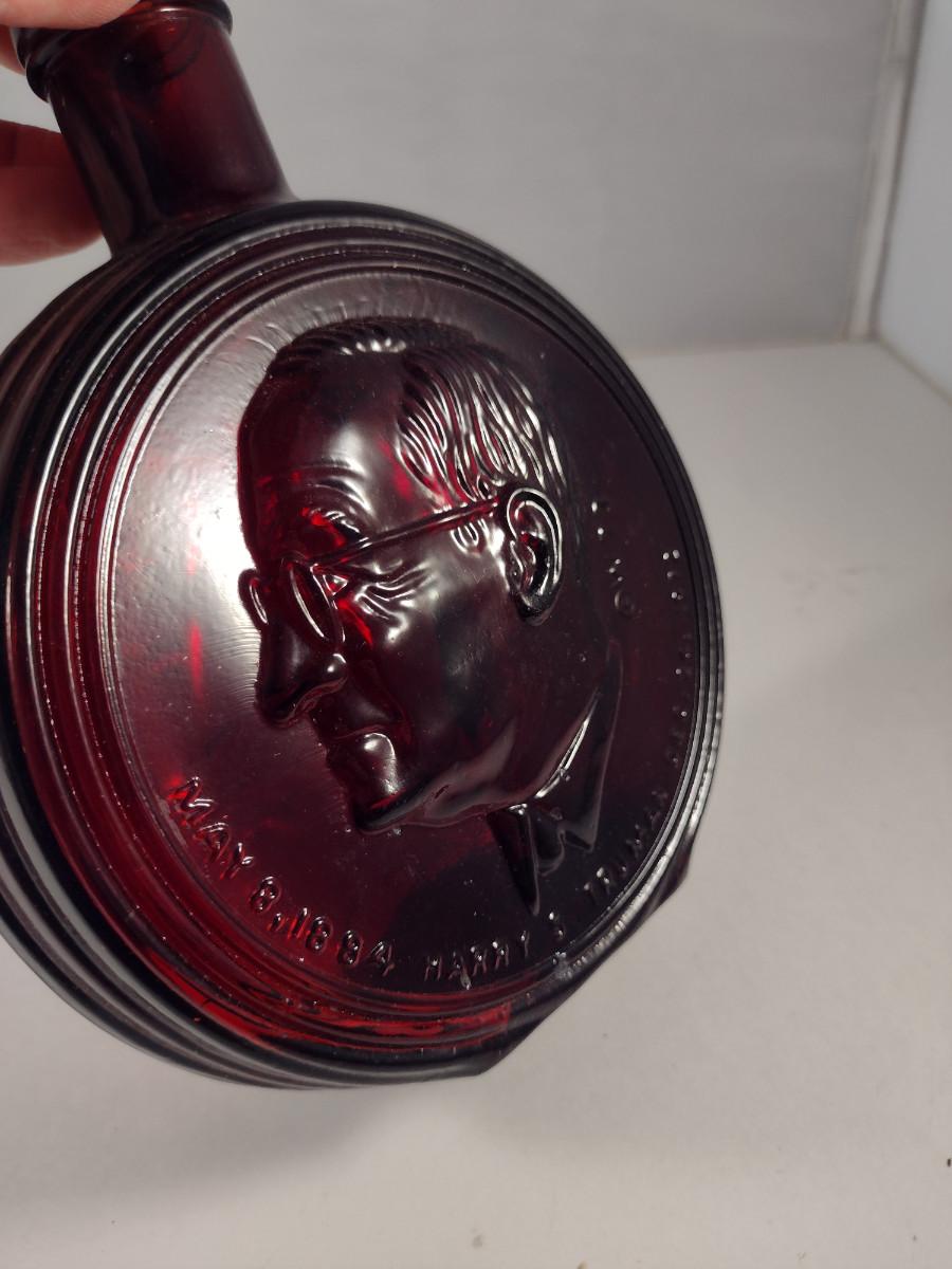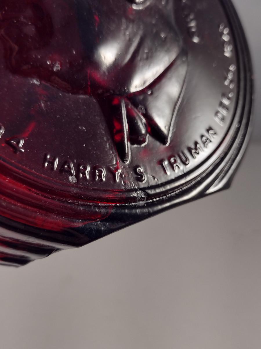 Vintage Ruby Red Wheaton Glass Bottle/Decanter Commemorating Harry S. Truman