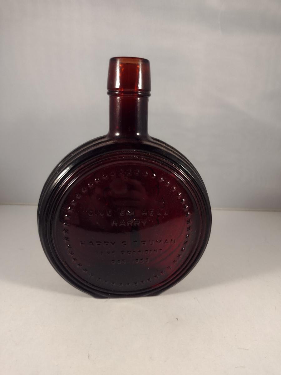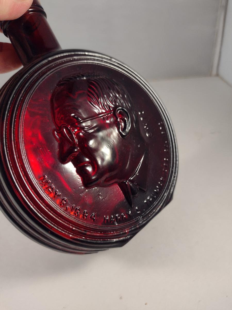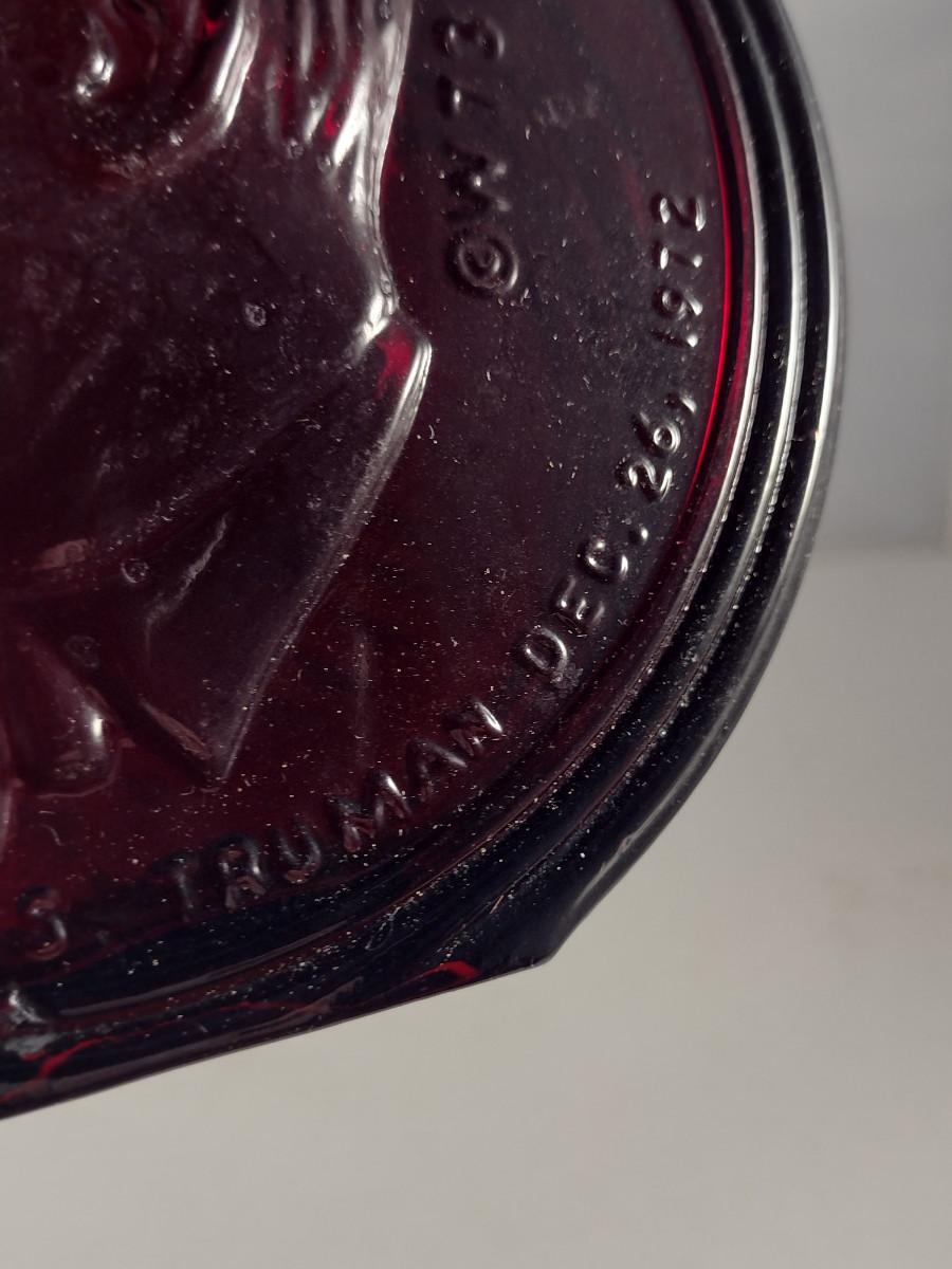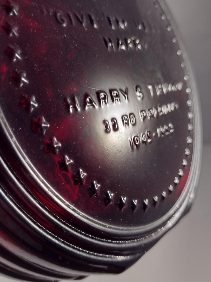 Vintage Ruby Red Wheaton Glass Bottle/Decanter Commemorating Harry S. Truman