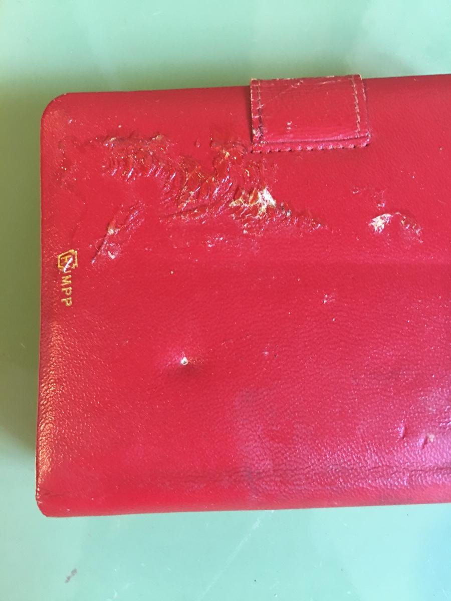 Vintage Rumpp red leather playing cards holder
