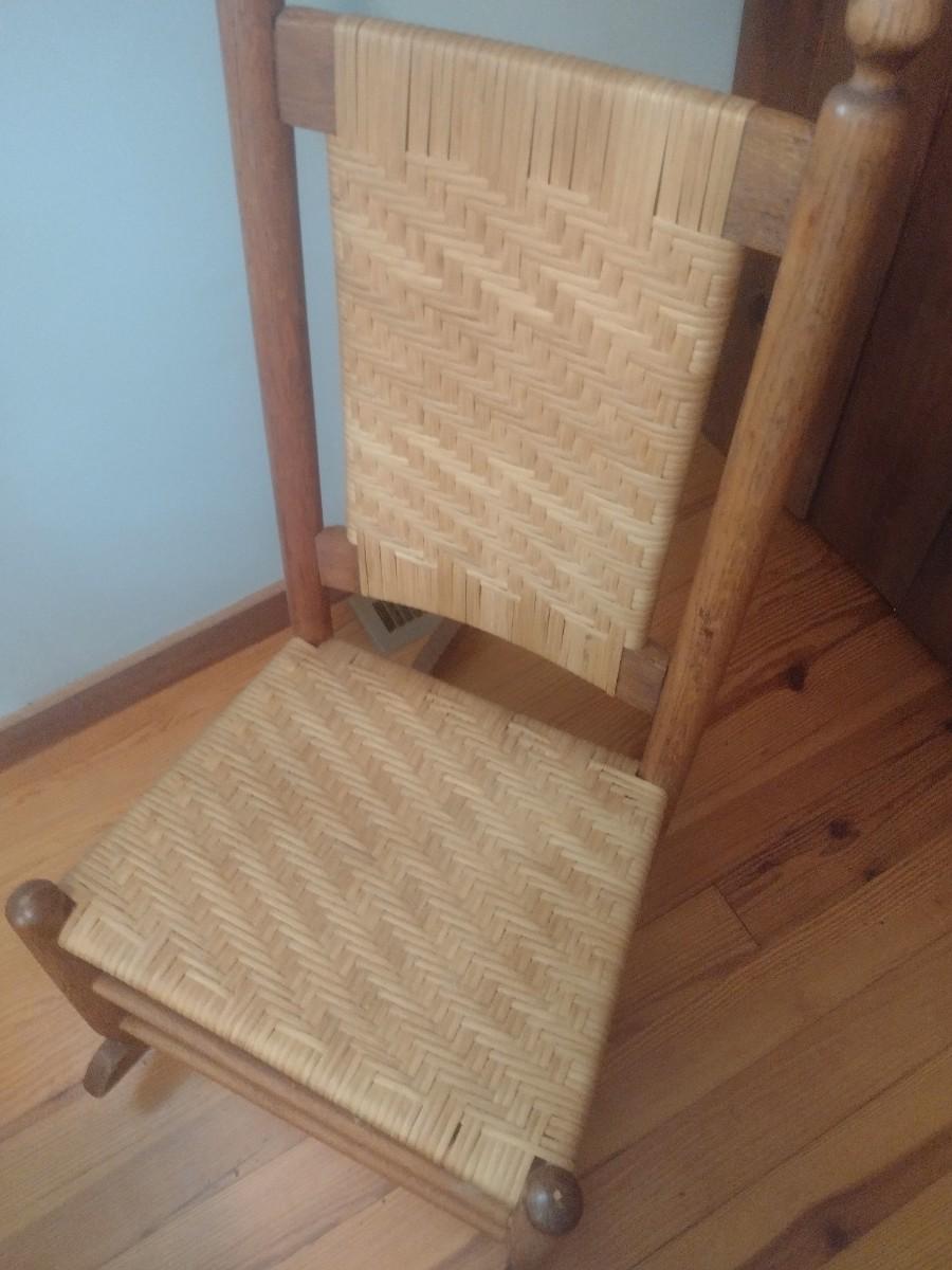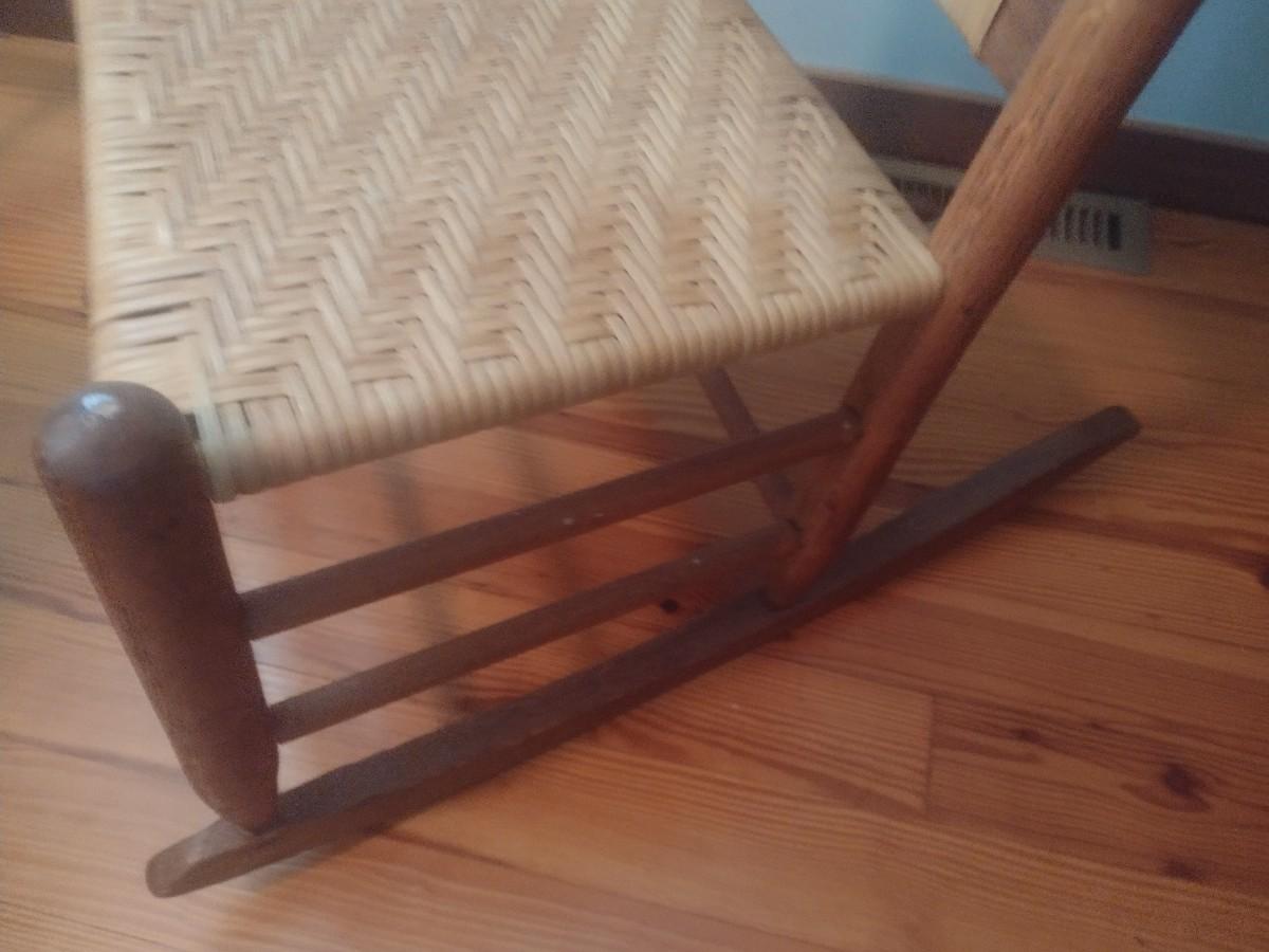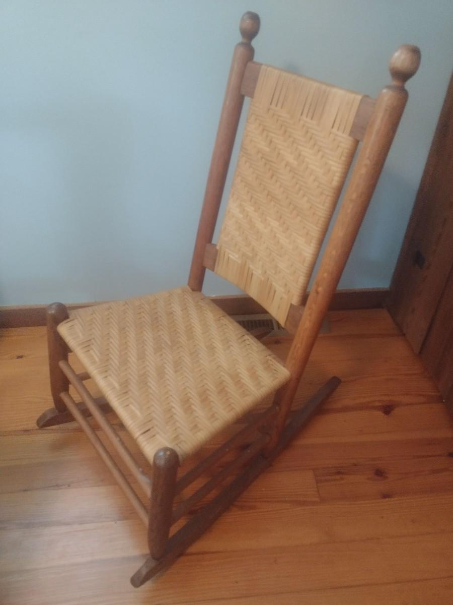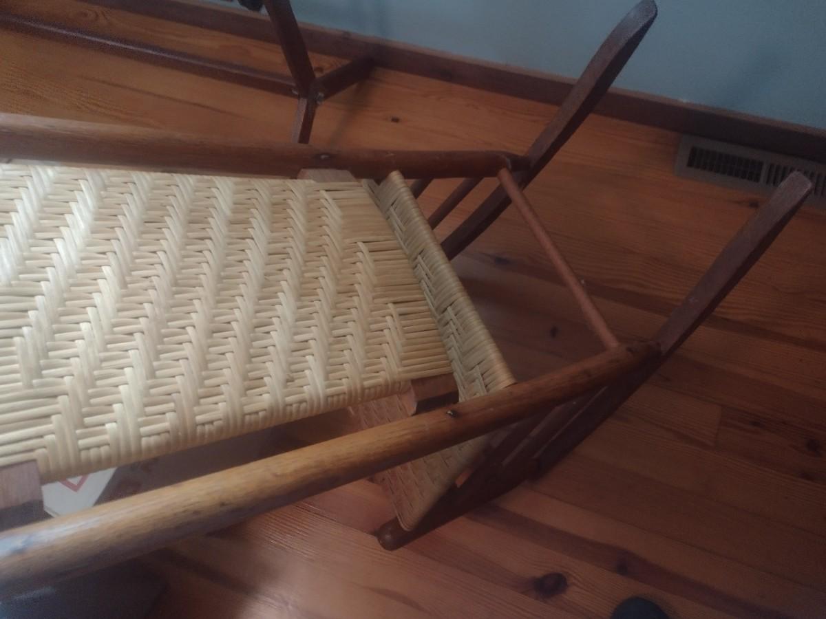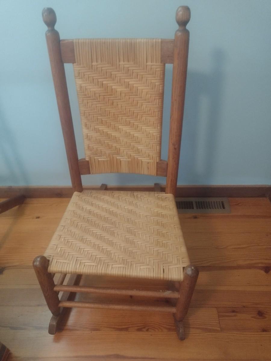 Vintage Rush Seat and Back Wood Framed Shaker Style Rocking Chair