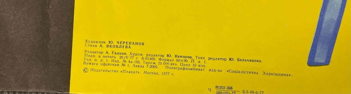 Description: VINTAGE RUSSIA SOVIET RARE PROPAGANDA POSTER. Year published - 1977. Measurement approximate: 34 x 22. Material: Paper