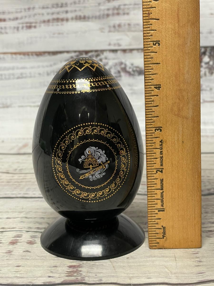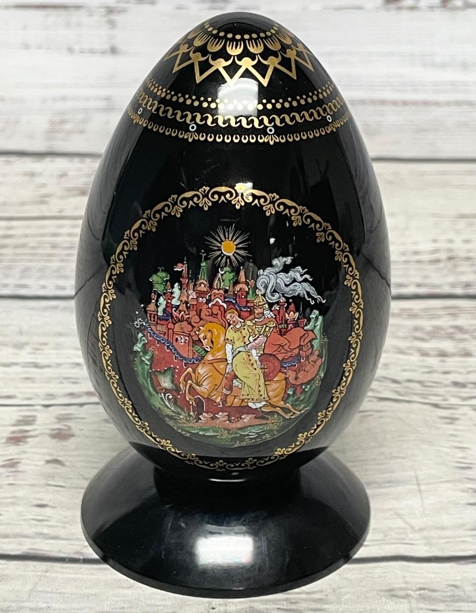 1981 Masters of Palekh Fairy Tale Ruslan and Ludmilla Russian Art Egg with Holder