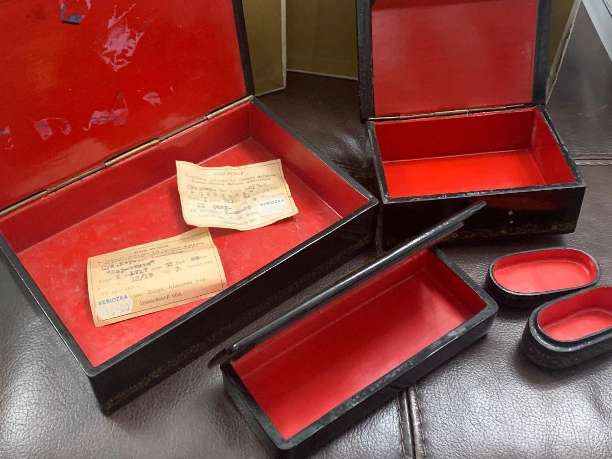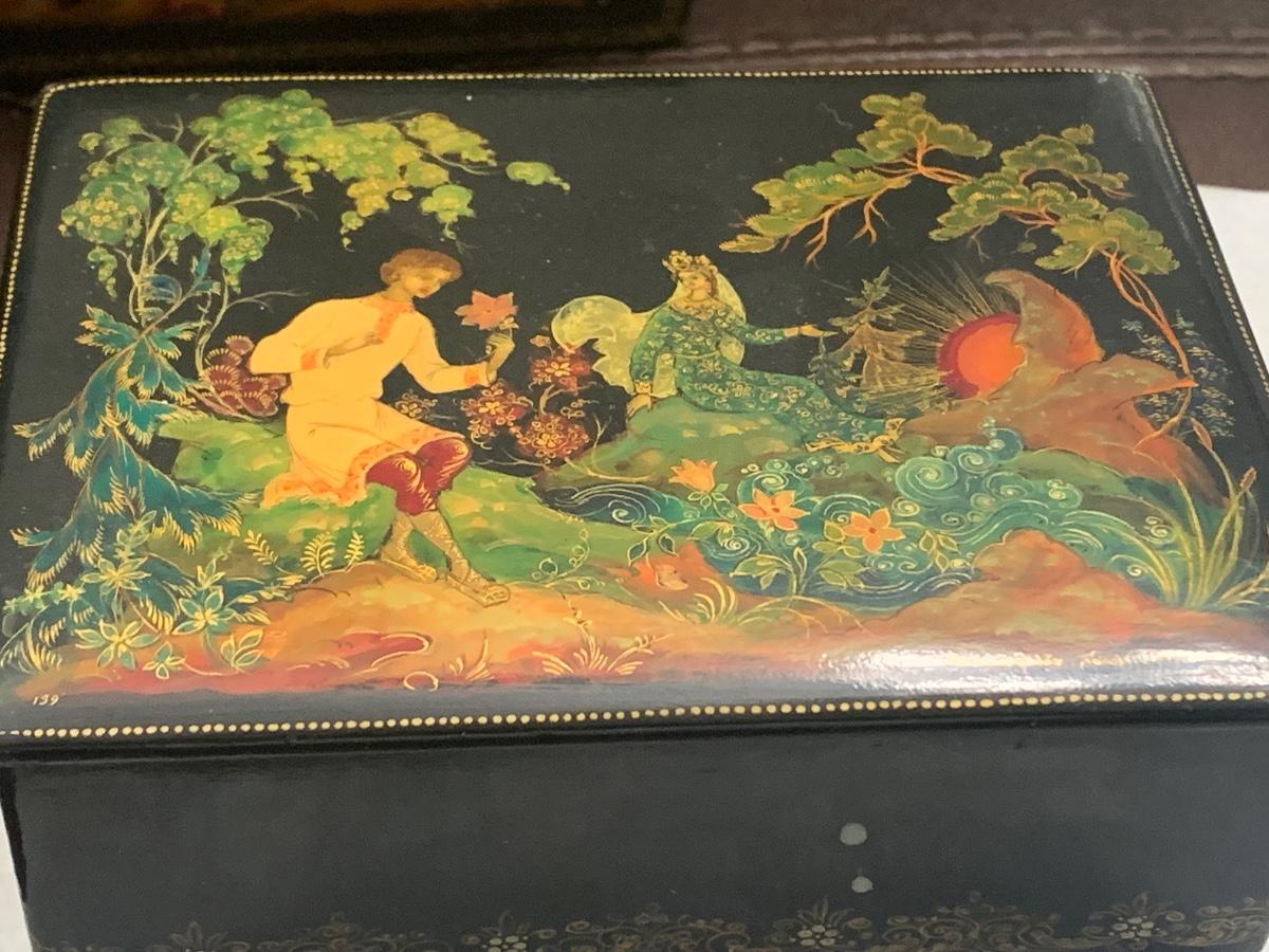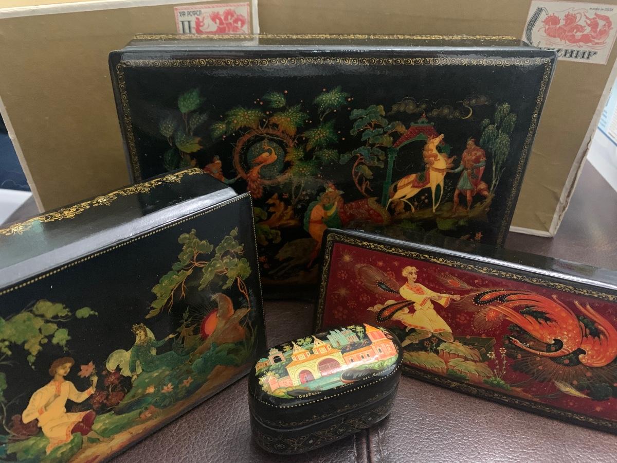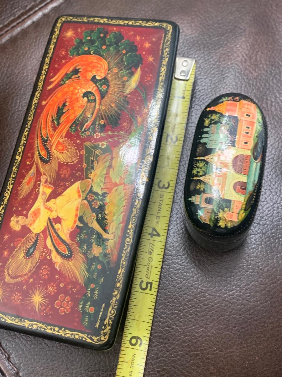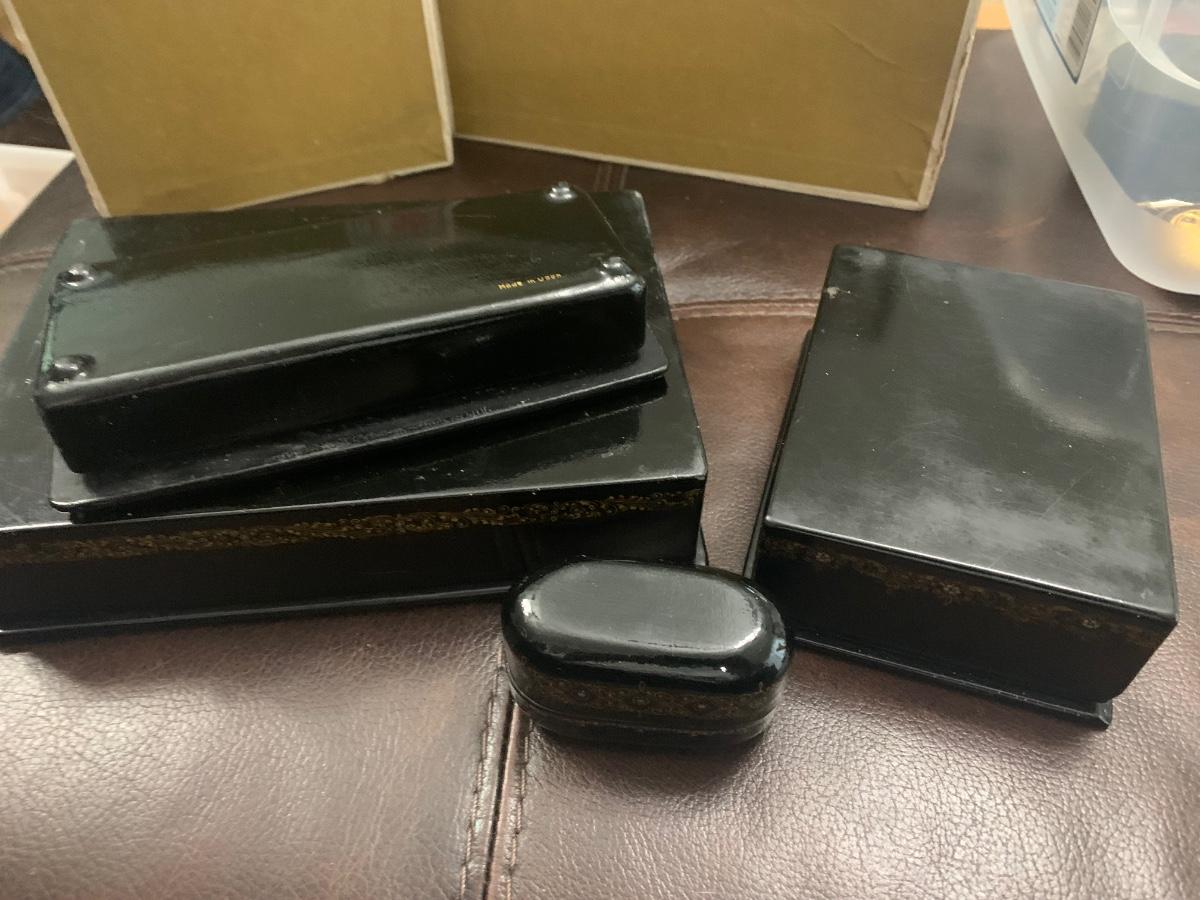 Vintage Russian Black Lacquer Boxes
