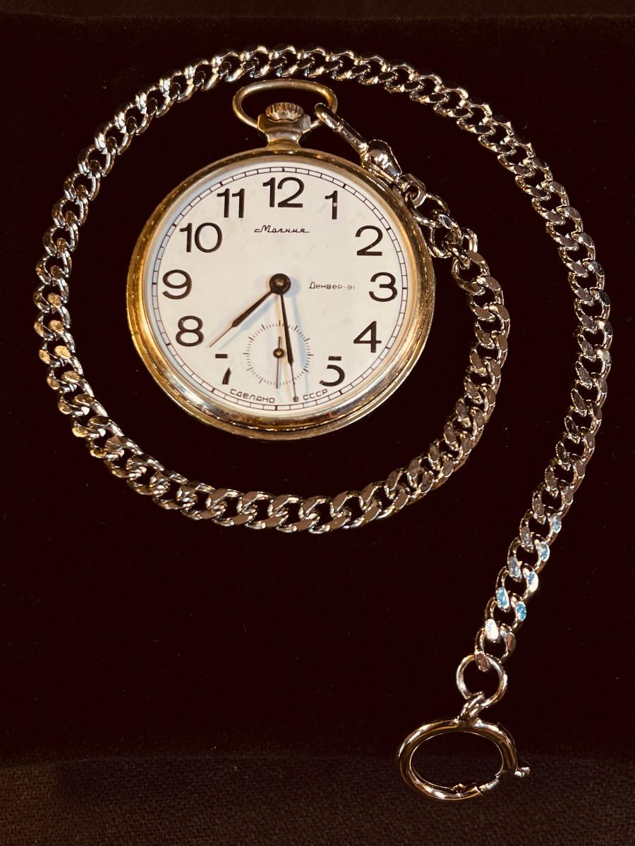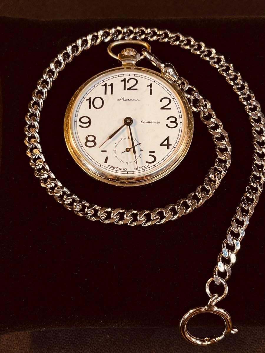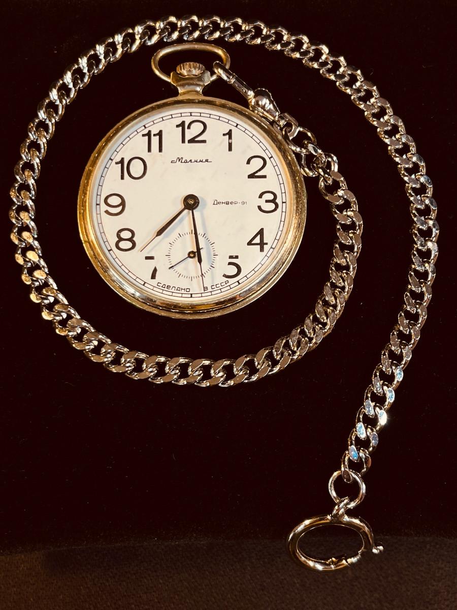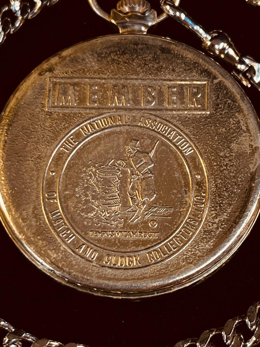 The subject item is a Russian-made, steel cased pocket watch issues in a “MEMBERS” case, and made available to “The National Association of Watch & Clock Collectors, INC. This watch winds and ticks. (see progressive pics for time change). Includes chain.