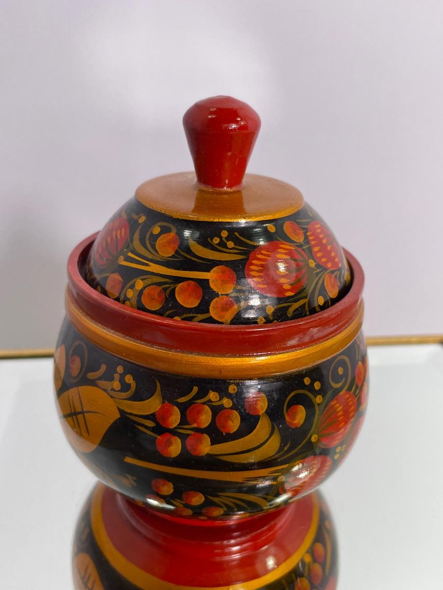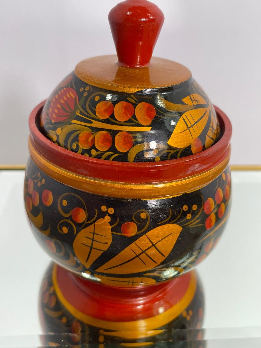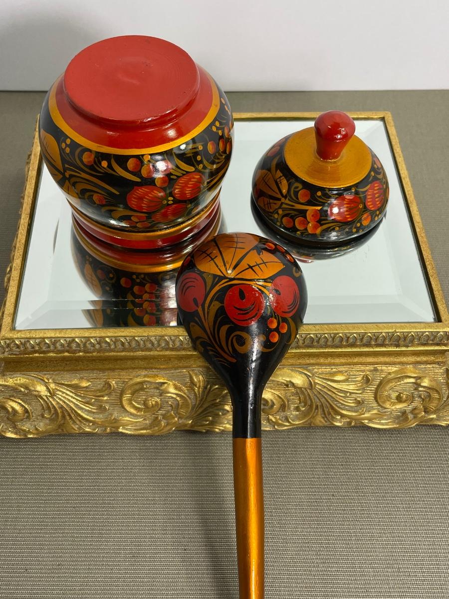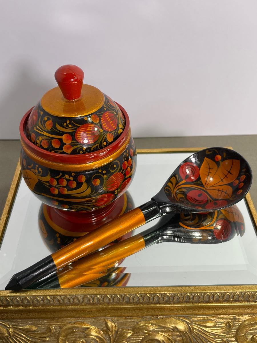 Vintage Russian Khokhloma Lacquer Bowl and Spoon