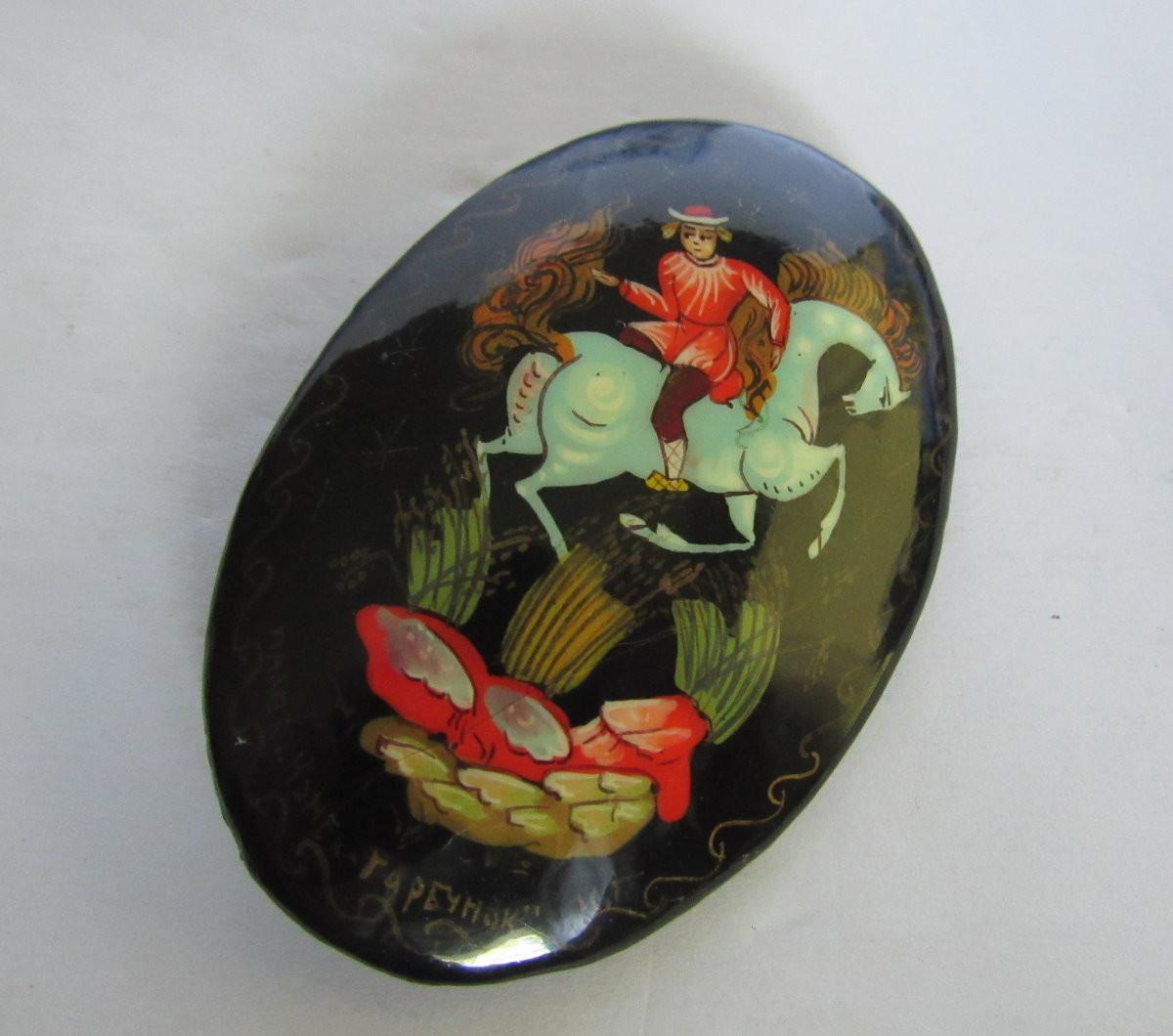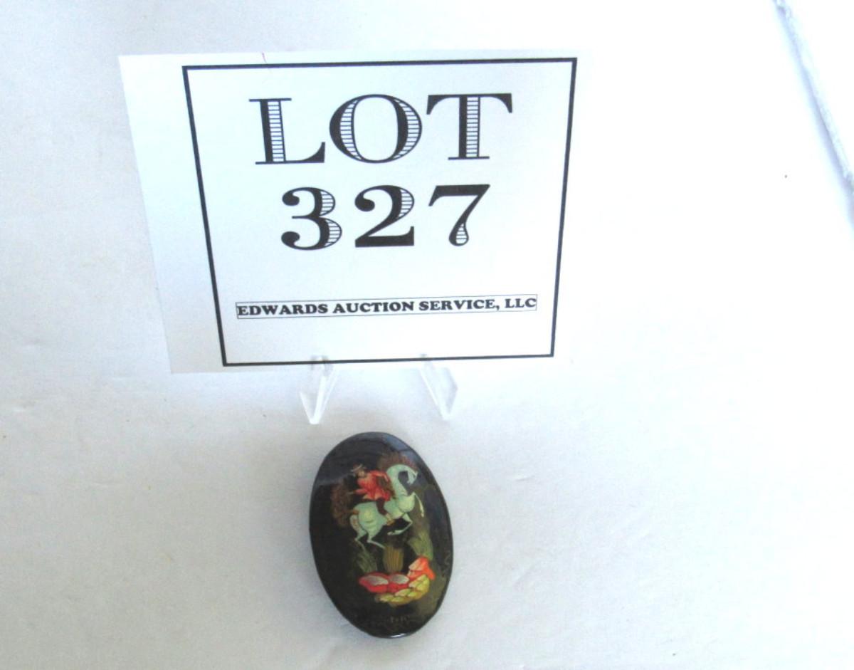 Lot 327: Vintage Russian Lacquer Oval Pin, Signed on Front