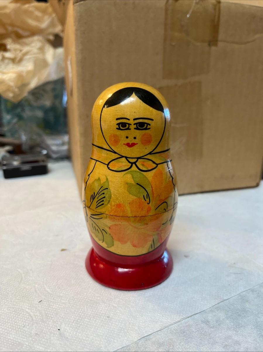 Vintage Russian Matryoshka Babushka Wooden Dolls Set of 3 Nesting Dolls