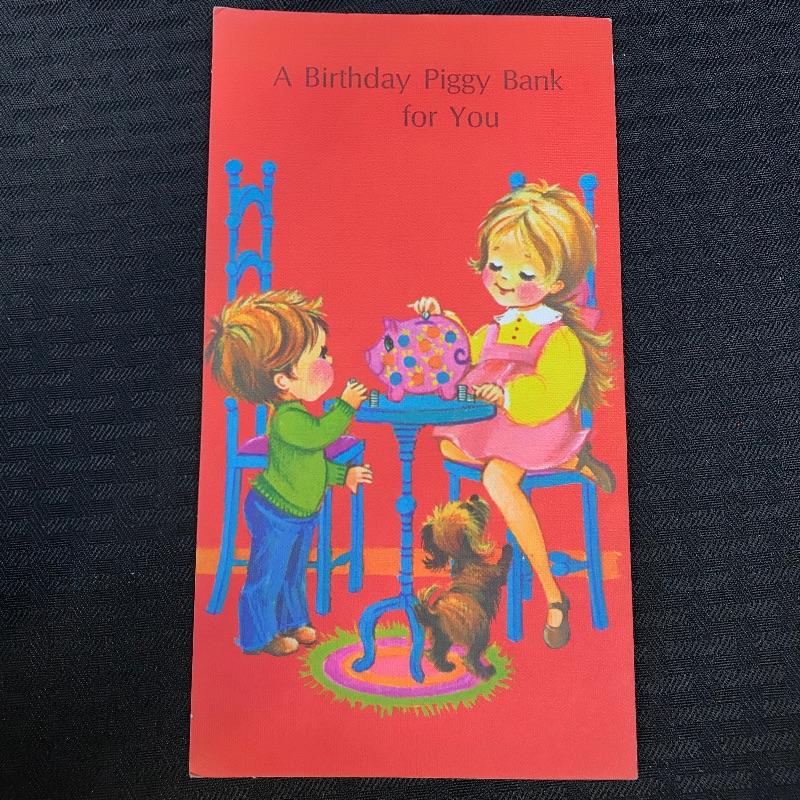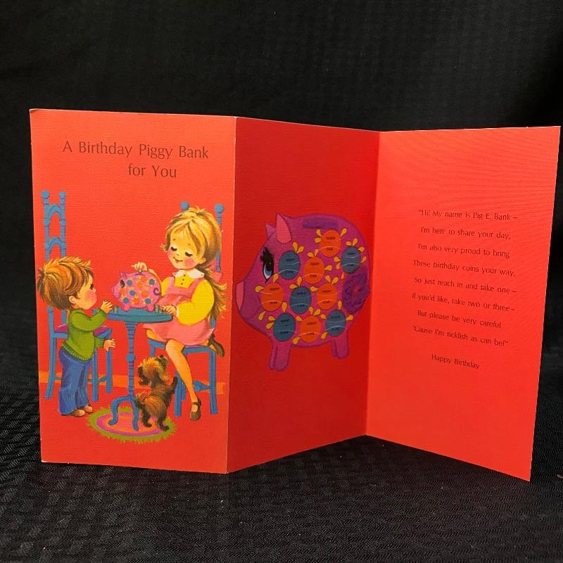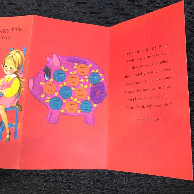 A really neat vintage birthday card with coin slots inside the card.