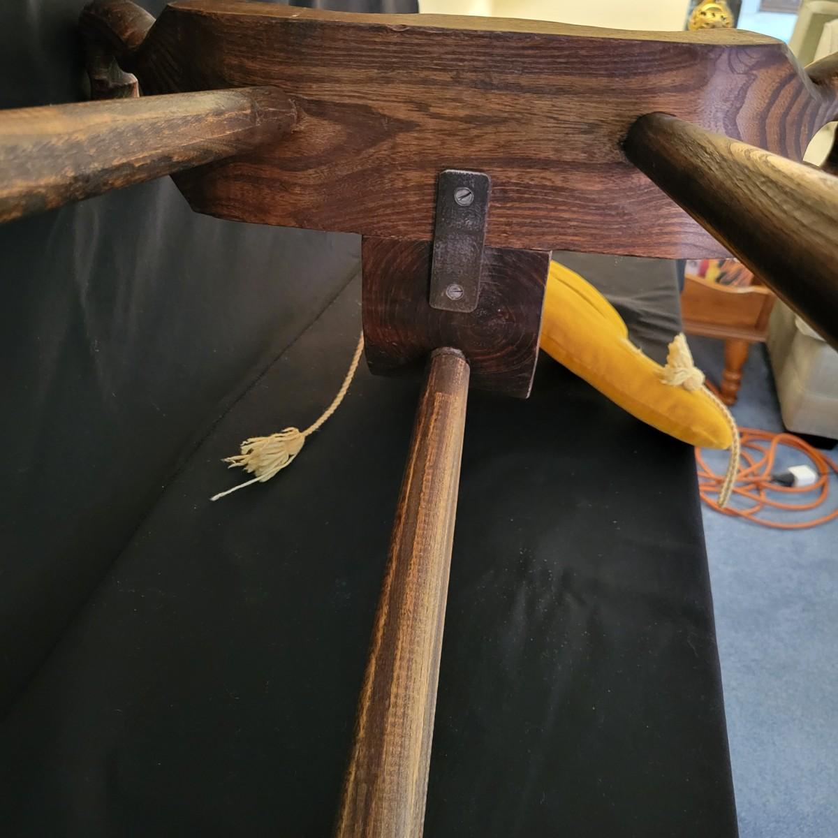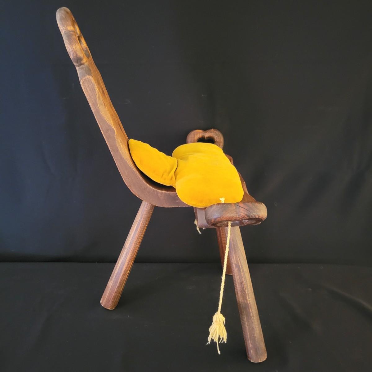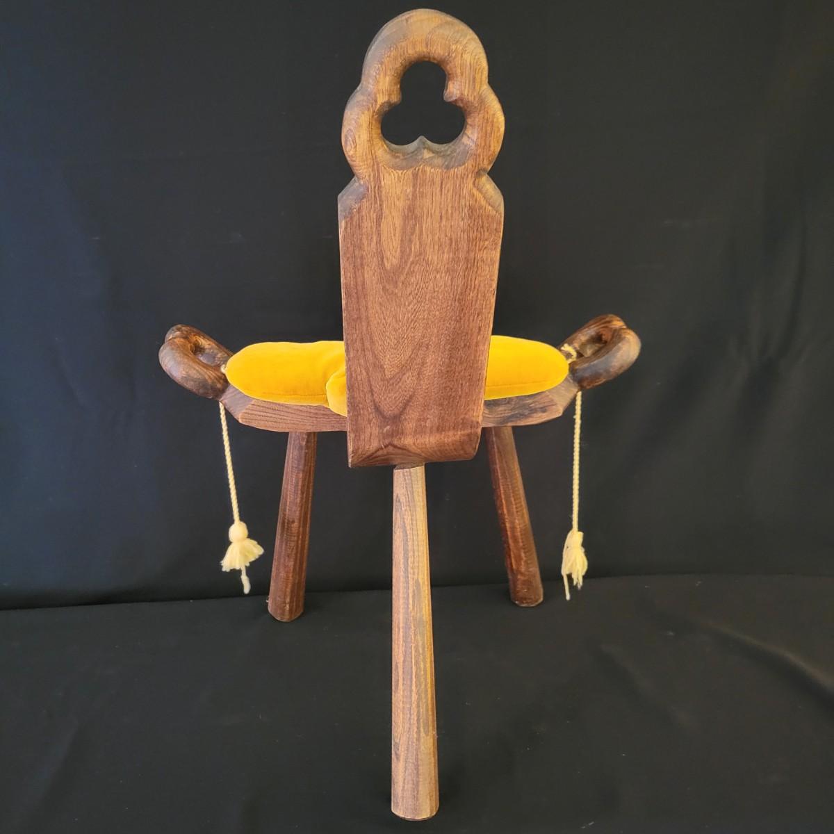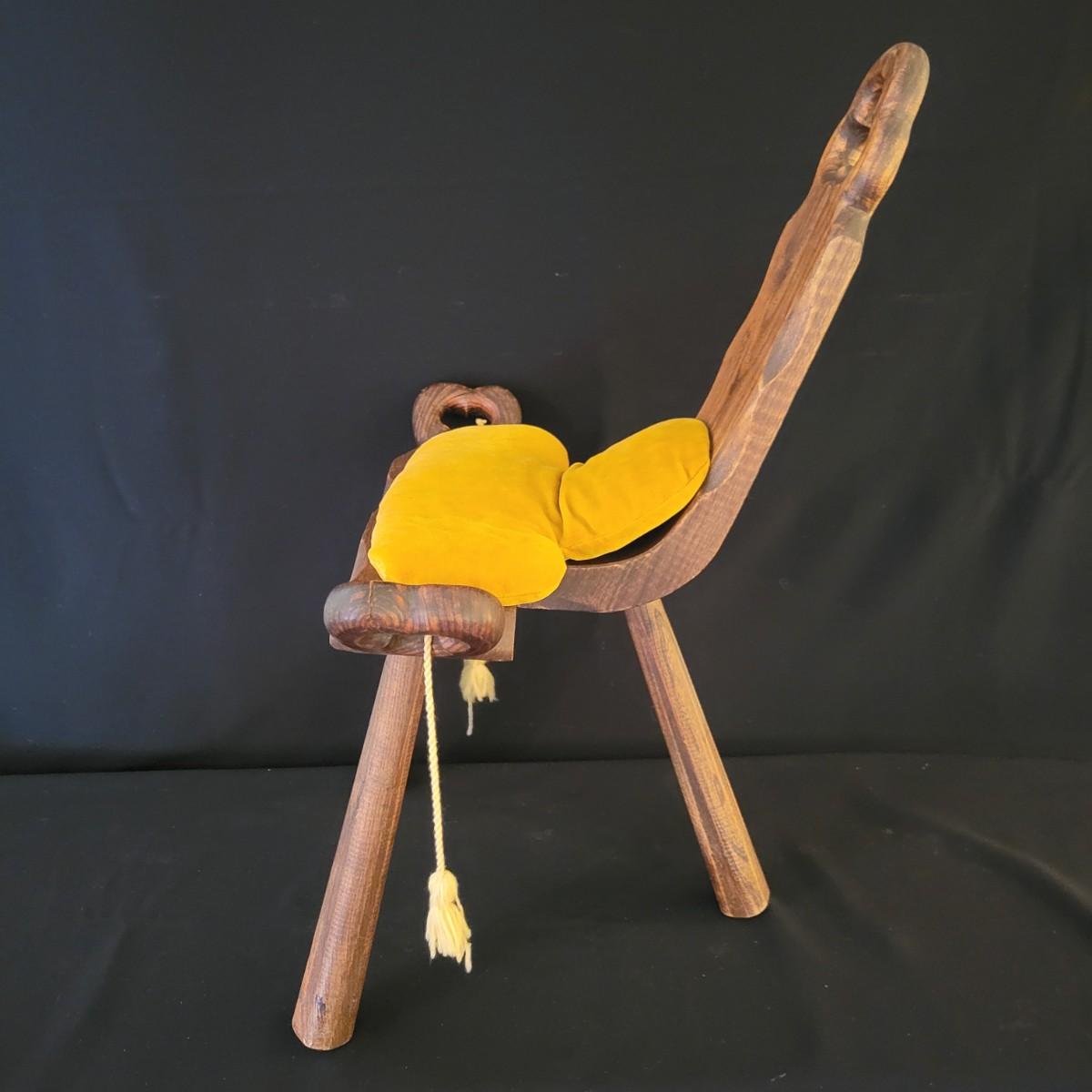 An interesting antique birthing stool in a carved oak with a golden velvet cushion. It measures approximately 20" x 15" x 27"H with a seat height of 15.5". Shipping available. Shipping can be costly. We suggest contacting our preferred local shipping provider, Postage Express, with dimensions and getting an estimate before bidding: (828) 670-5501 or postageexpress@yahoo.com.