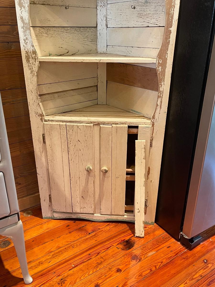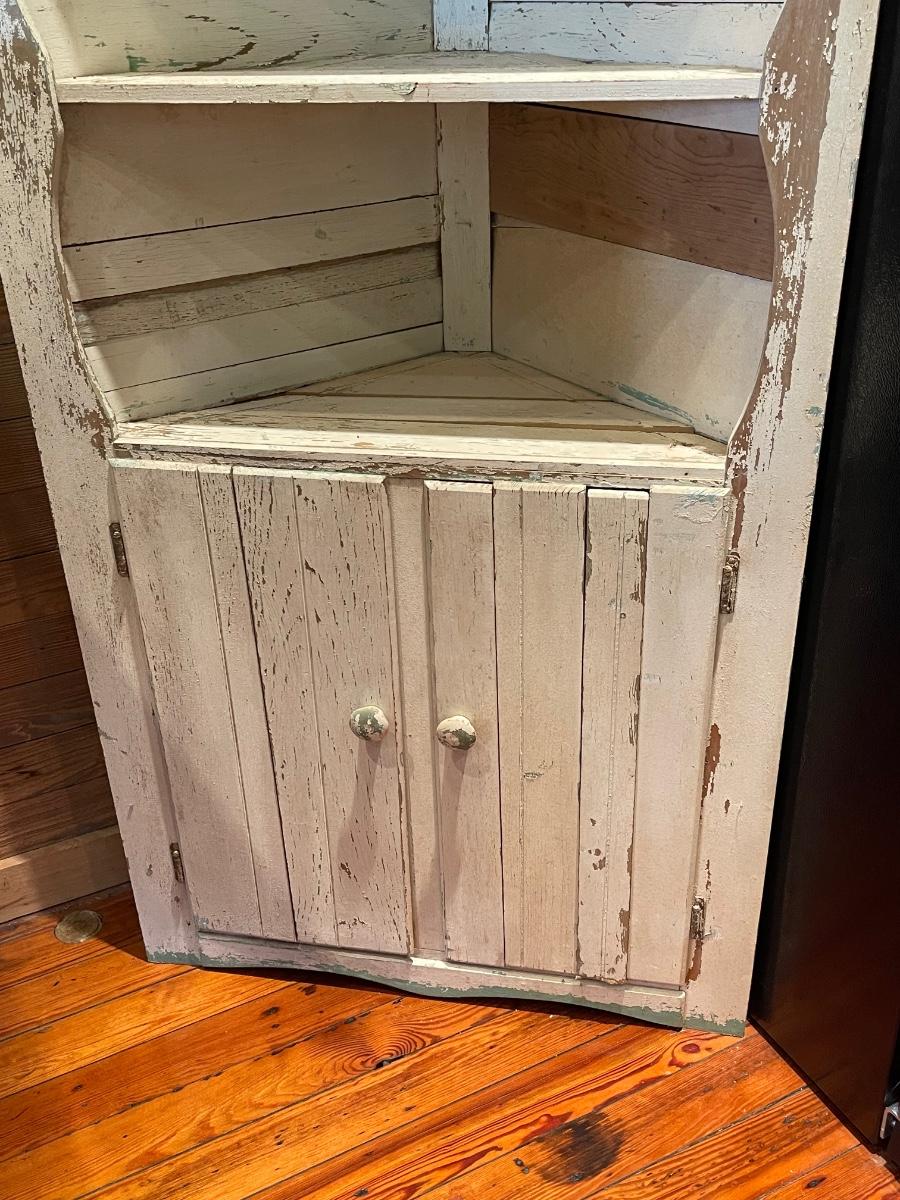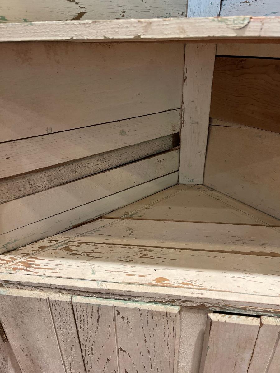 Vintage “Rustic” Off White Distressed Solid Wood Corner Cabinet ~ *Read Details