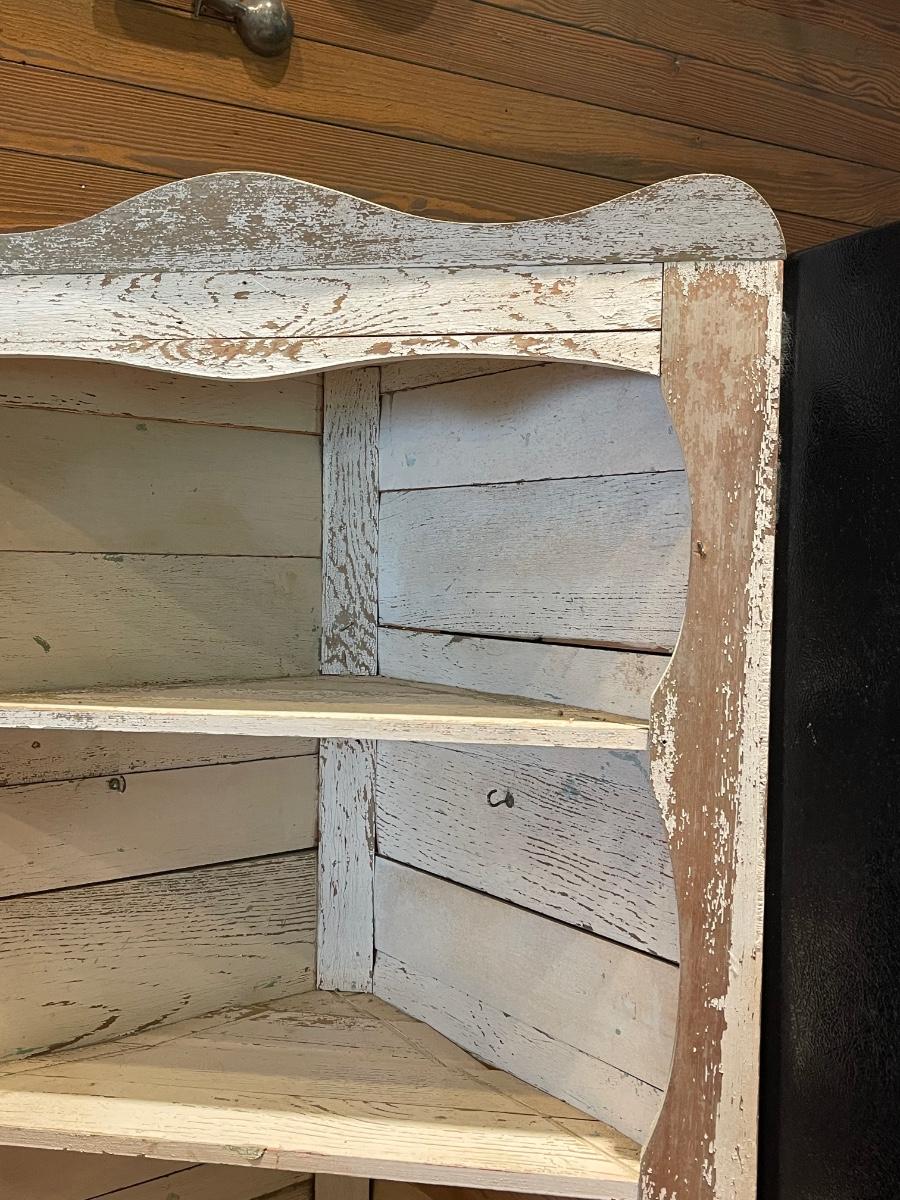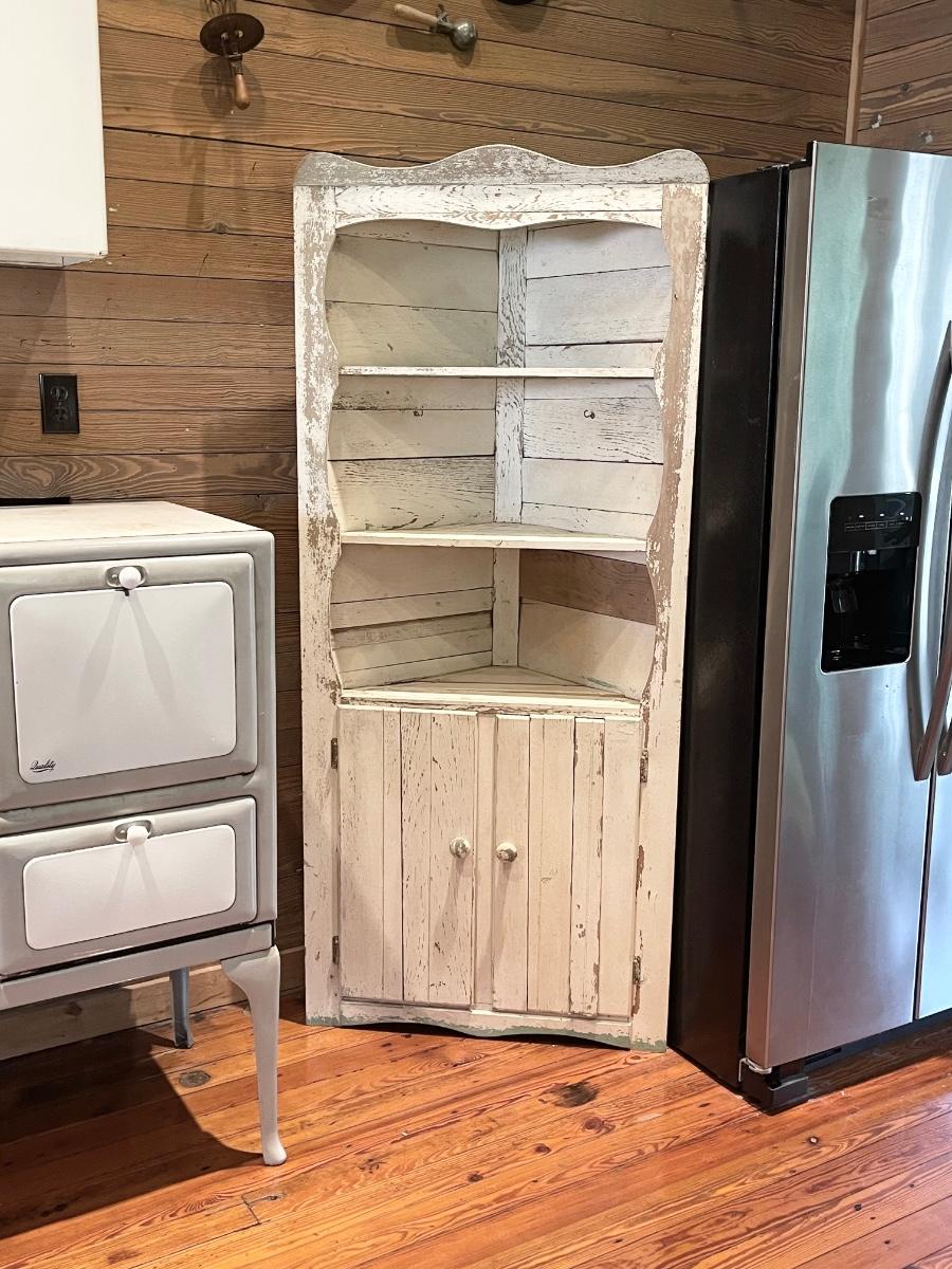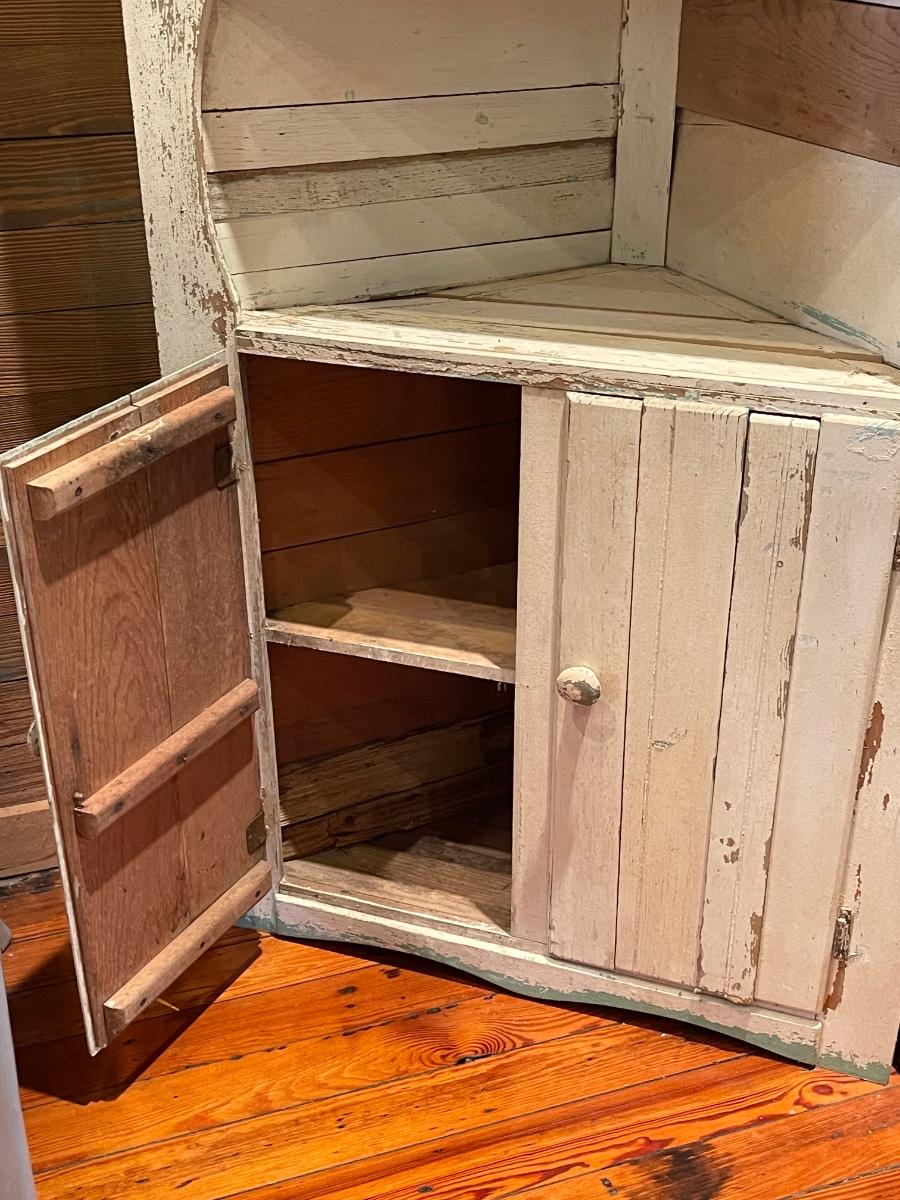 Vintage “Rustic” Off White Distressed Solid Wood Corner Cabinet ~ *Read Details
