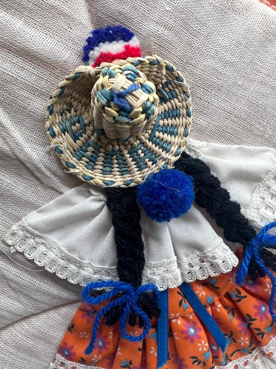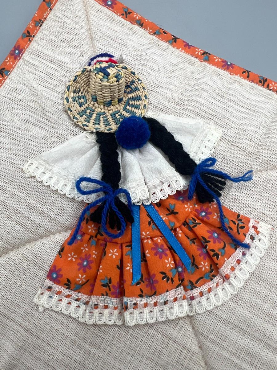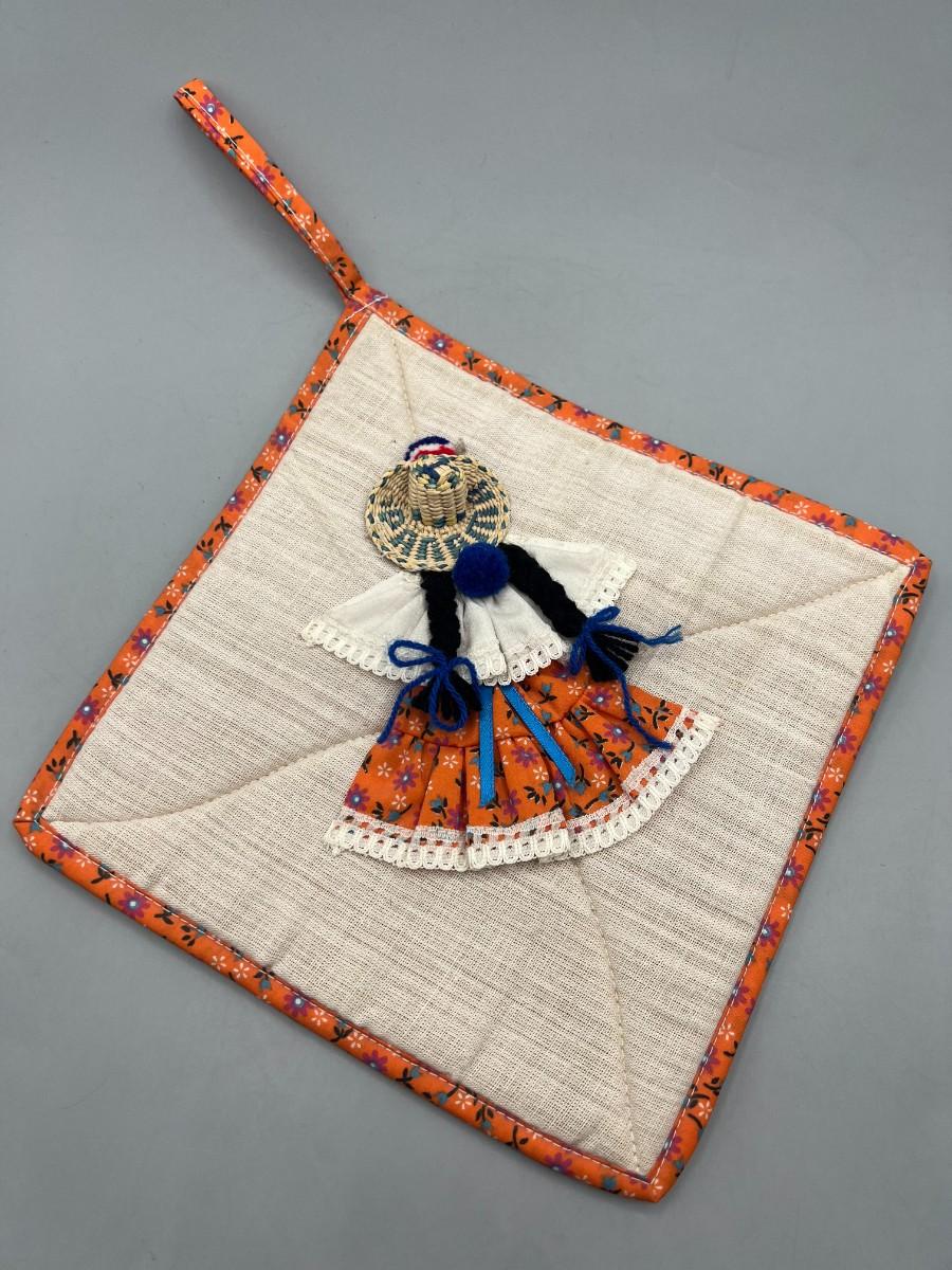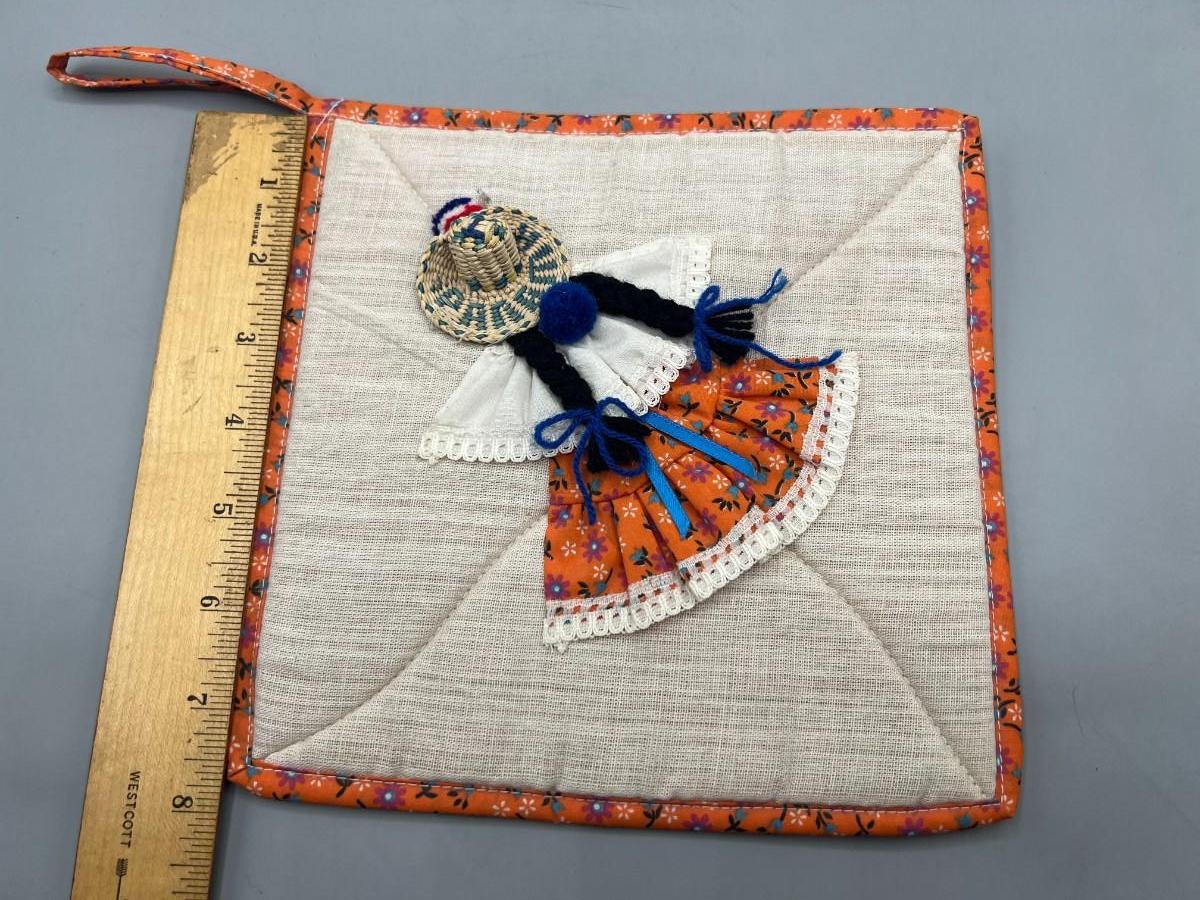 Vintage Rustic Square Handmade Fabric Folk Art Spanish Woman Traditional Wear Pot Holder