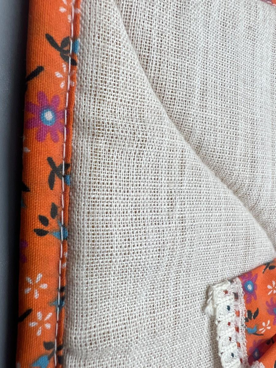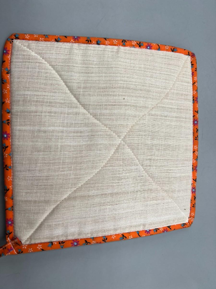 There is no damage or ripping to the pot holder and is in good useable condition.