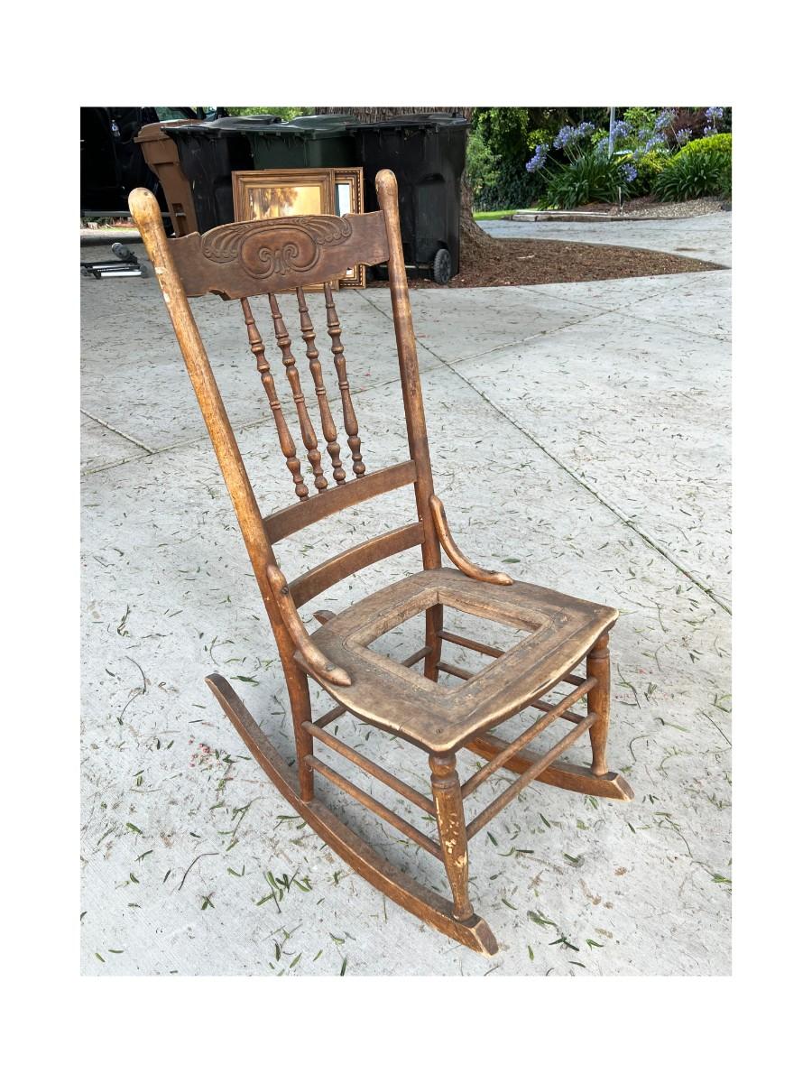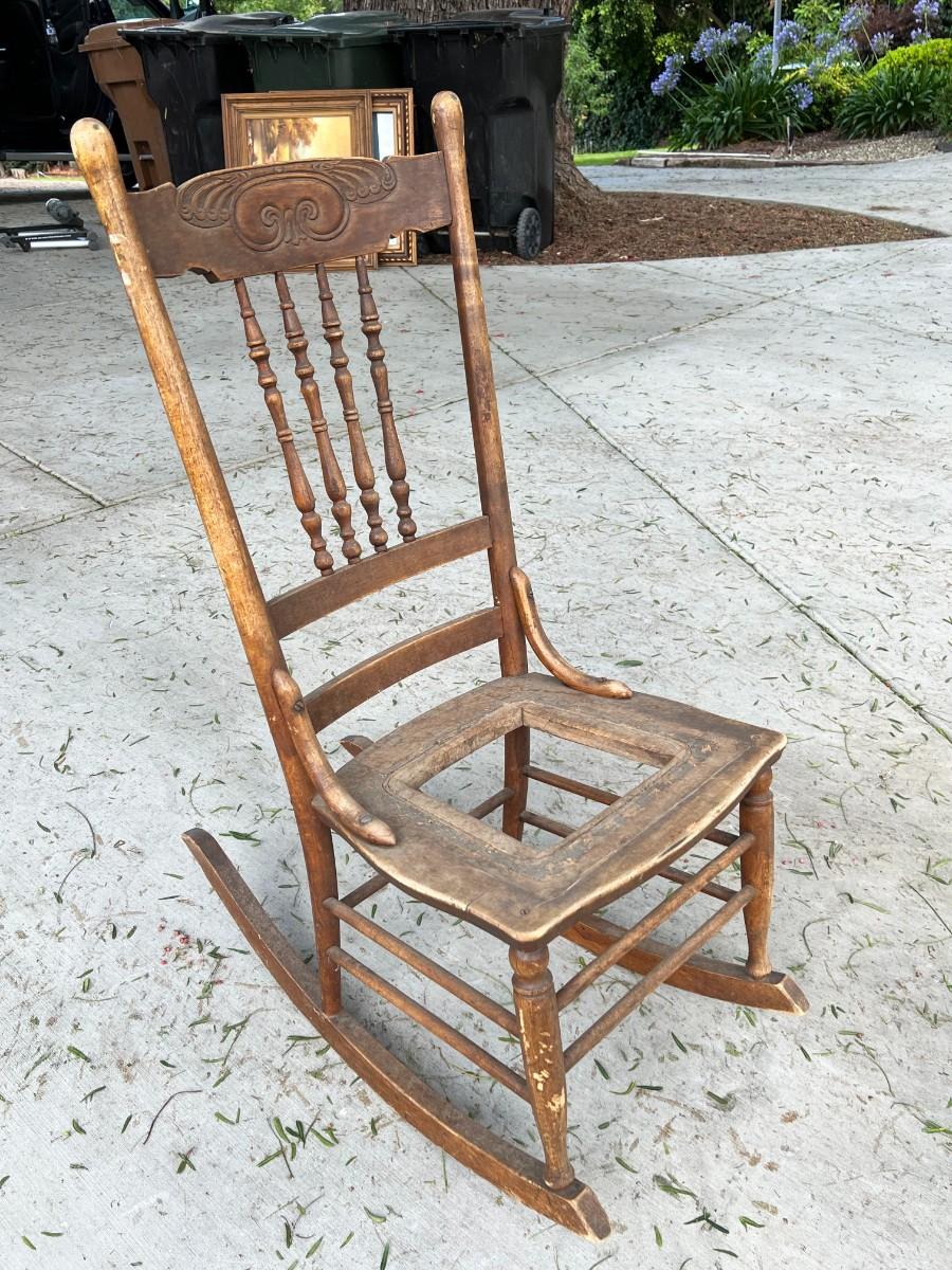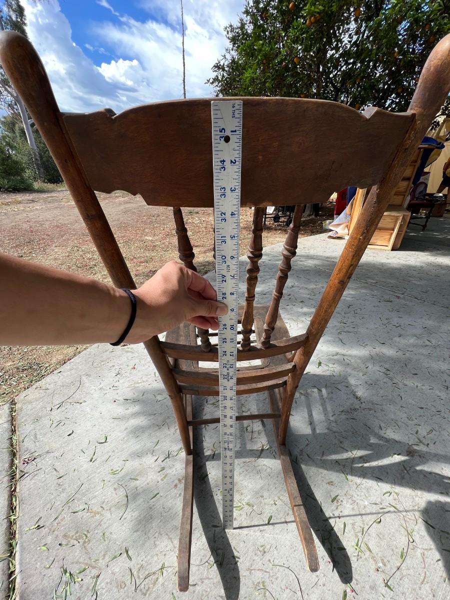 There is some vintage wear to the rocking chair, but there is no significant damage and is in overall fair vintage condition. Check pictures for more details and for sizing. TO BE PICKED UP IN LA HABRA HEIGHTS. WE WILL SCHEDULE PICK UP AFTER JULY 4TH.