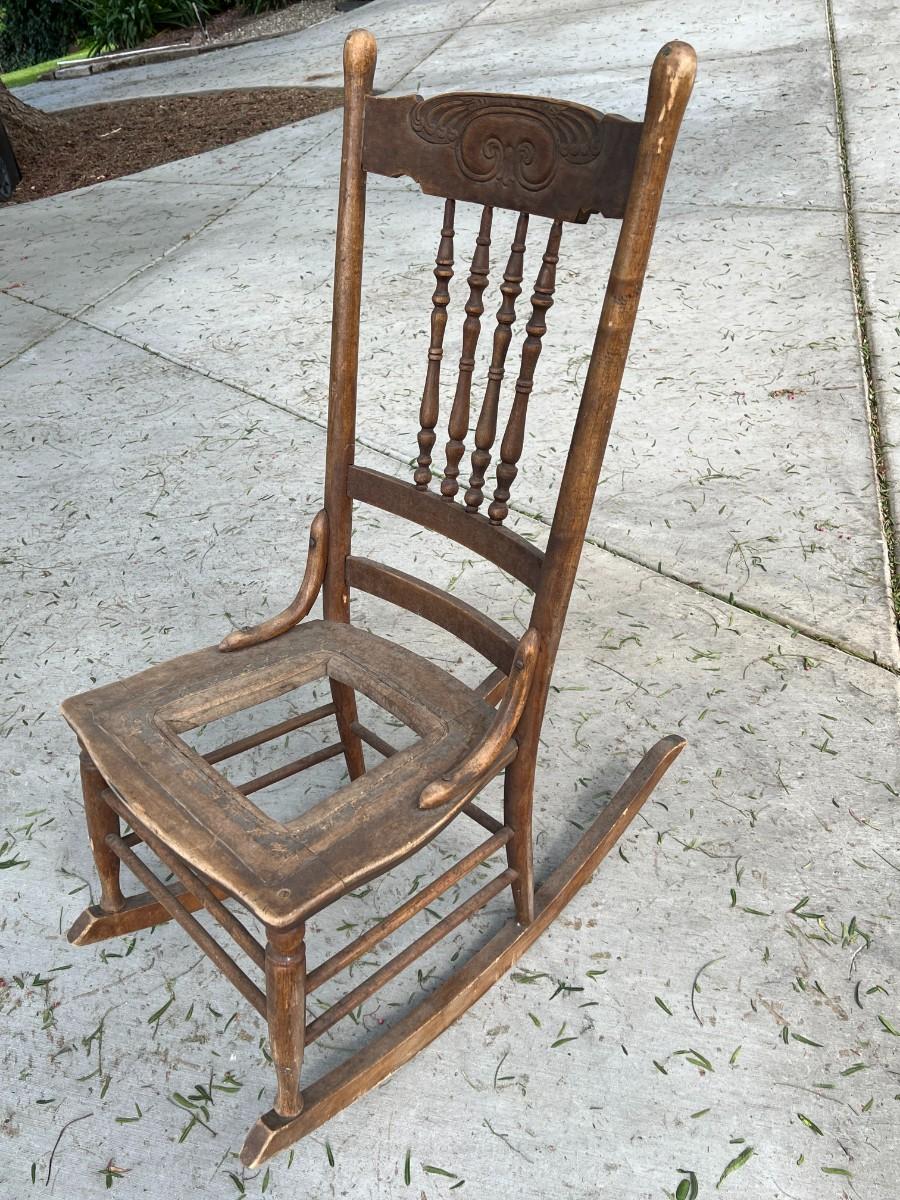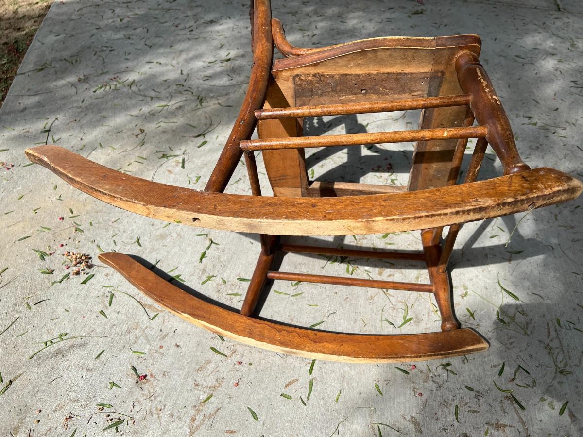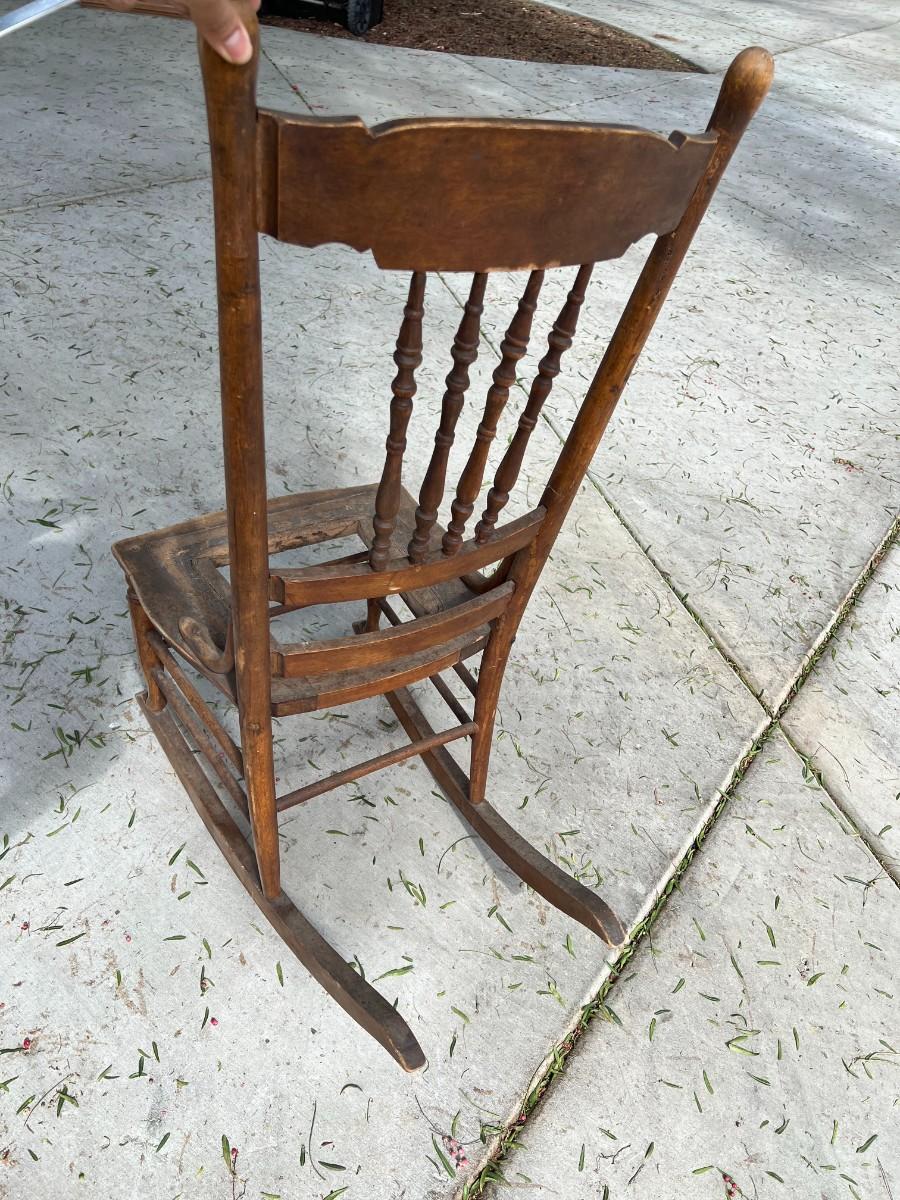 There is some vintage wear to the rocking chair, but there is no significant damage and is in overall fair vintage condition. Check pictures for more details and for sizing. TO BE PICKED UP IN LA HABRA HEIGHTS. WE WILL SCHEDULE PICK UP AFTER JULY 4TH.