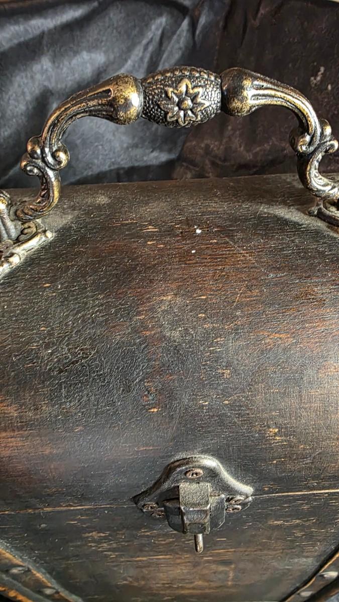 Vintage Rustic Wooden Treasure Chest Box with Ornate Metal Handle & Old-World Hardware – Tall Decorative Storage Trunk
