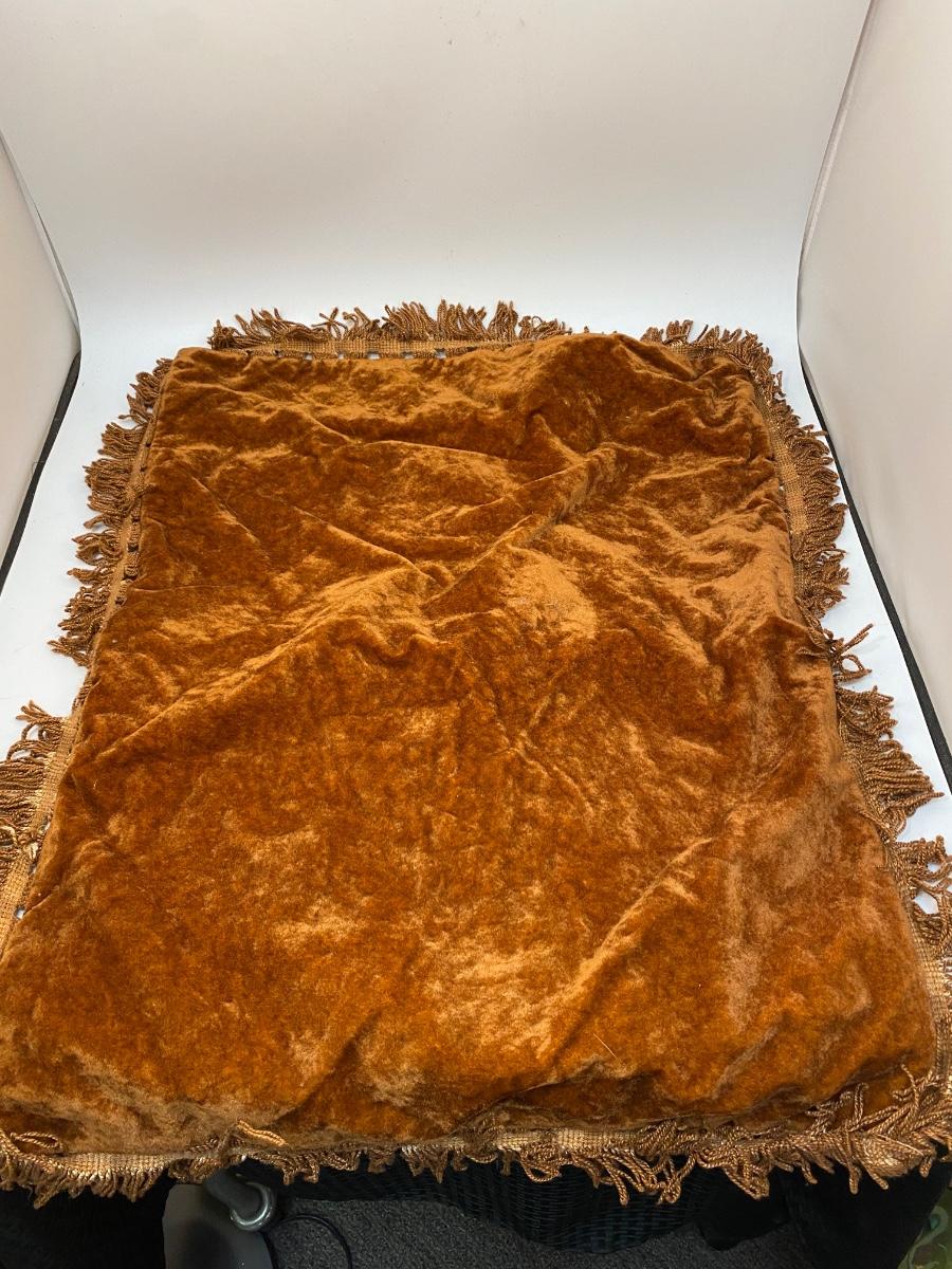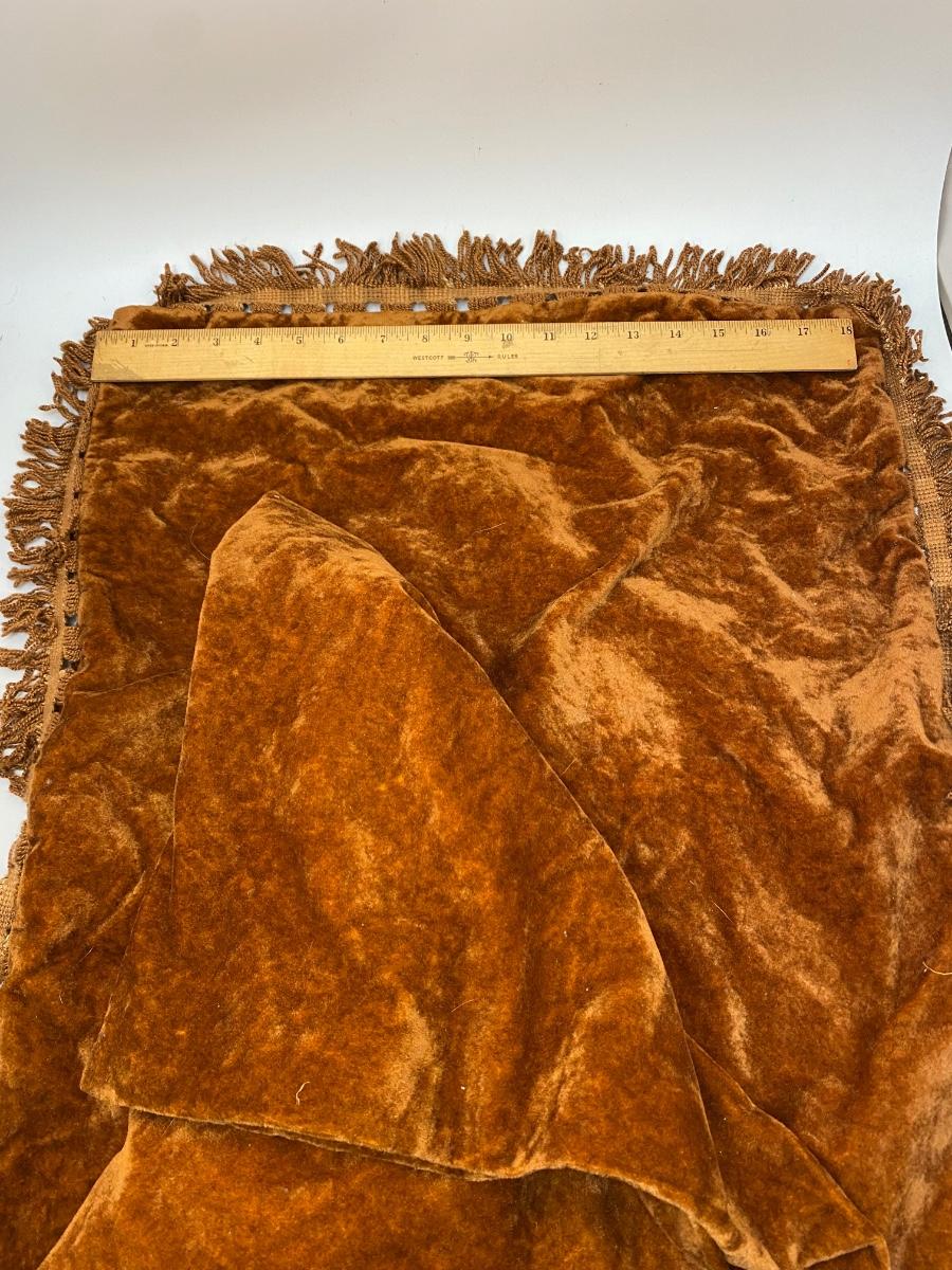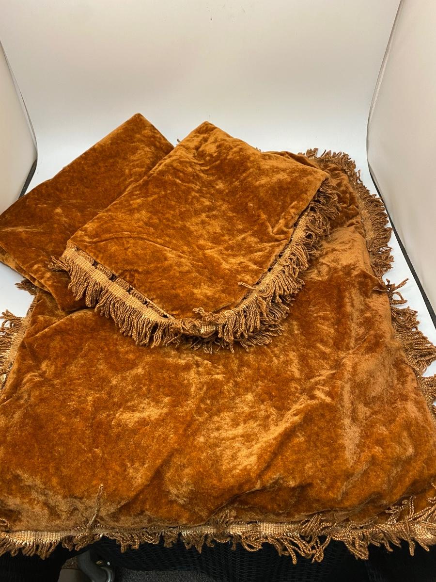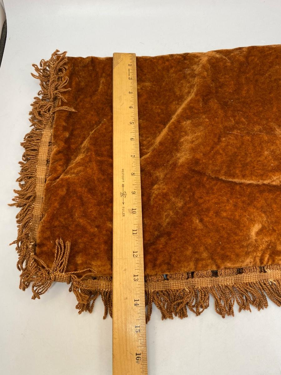 Vintage Rusty Orange Crushed Velvet Pillow Cases Covers Set of 3. Two are fringed one is not. Light wear from use and age. About 18x28 size.