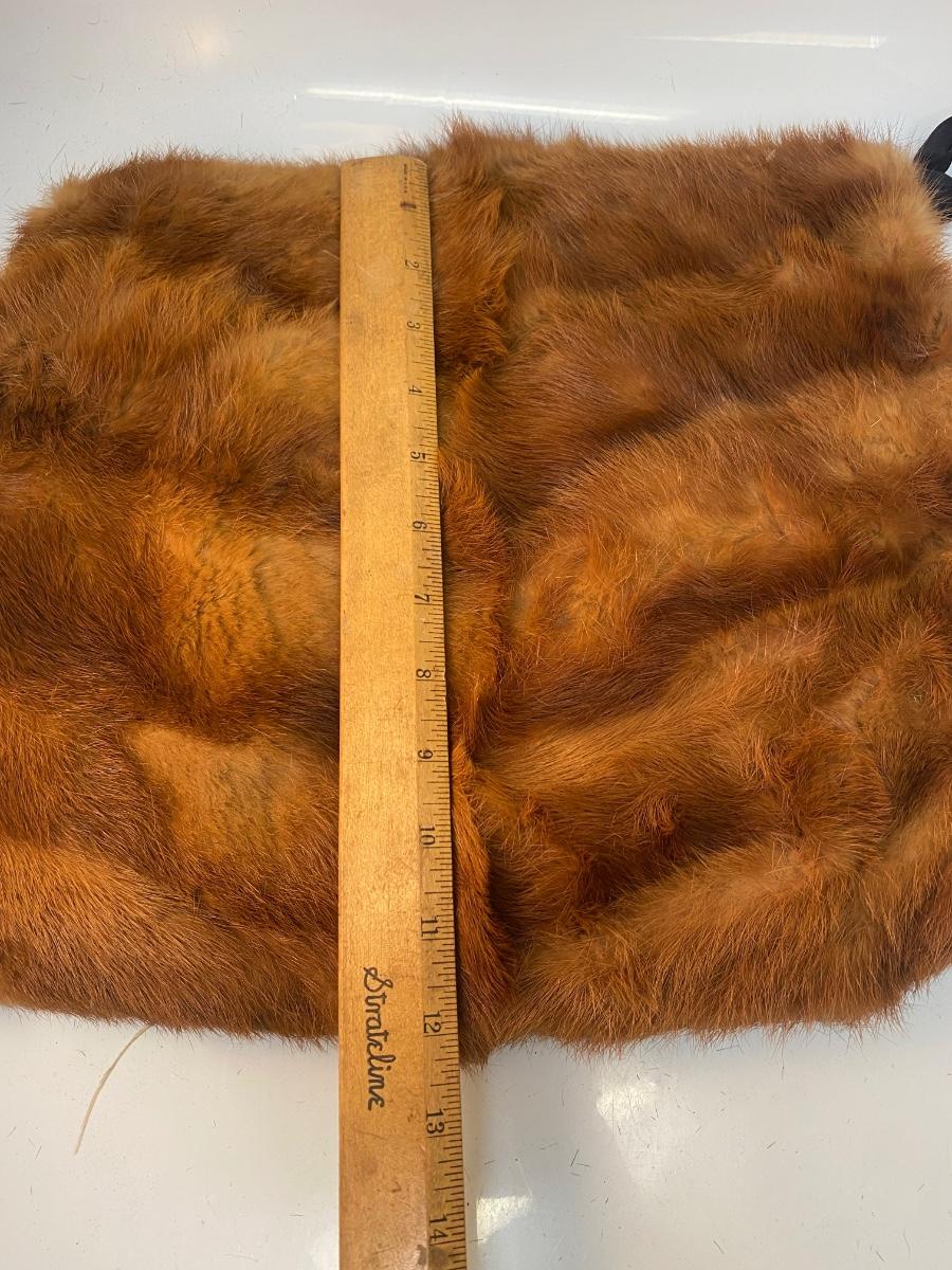 Vintage Rusty Red Mink Fur Hand Wamer Muff Handbag. In good condition. Zipper pocket with working zipper. Approx. 12"x16" size.