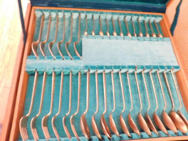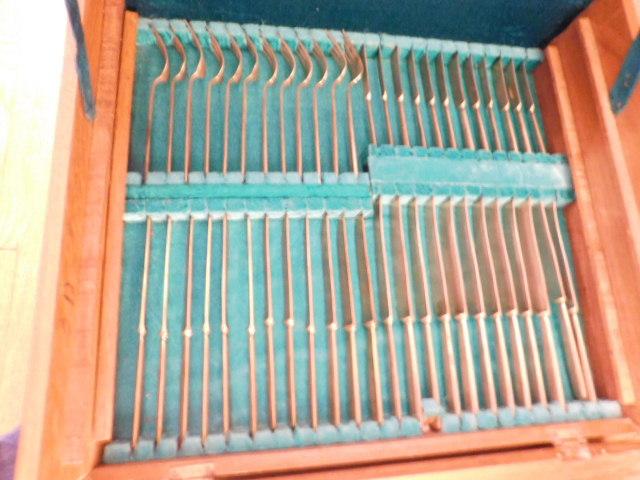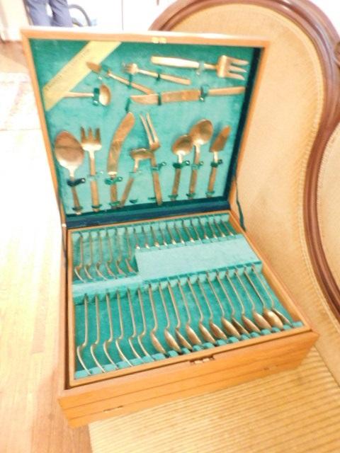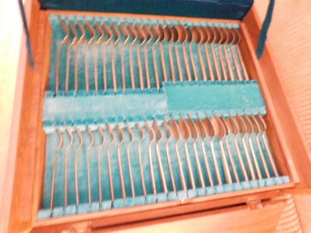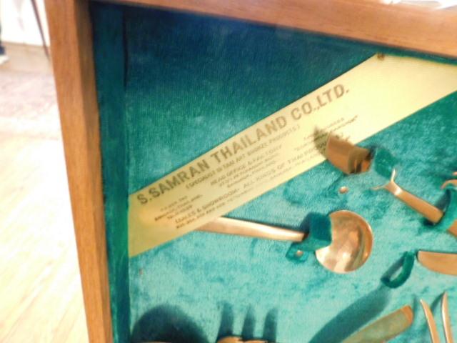 Vintage S. Samran Thailand Co. Flatware Set in Solid Wood Cabinet Approximately 144 pcs