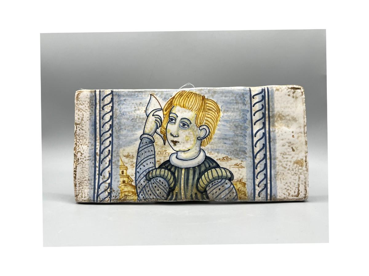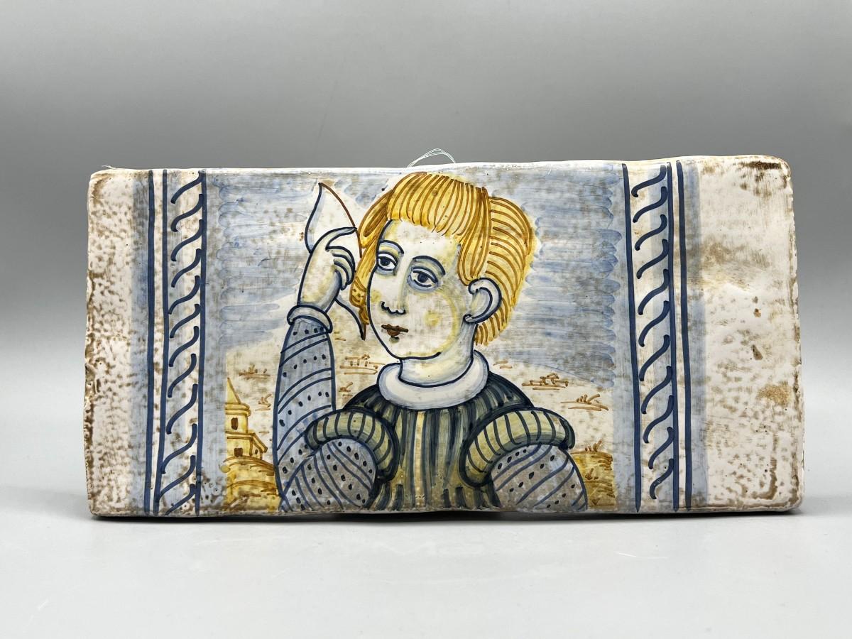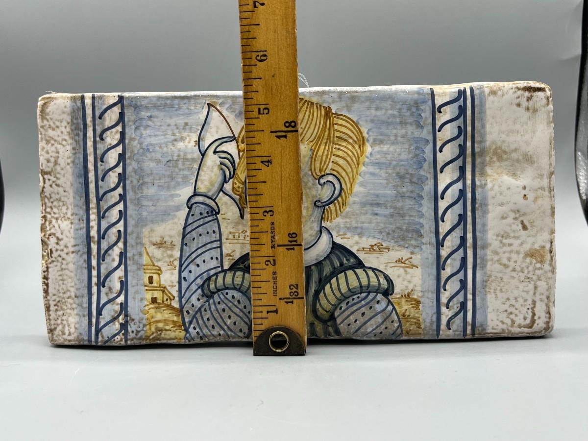 Vintage hand painted Saca Castelli tile. Italian ceramic tile. Can be hung for displaying. About 10" size.