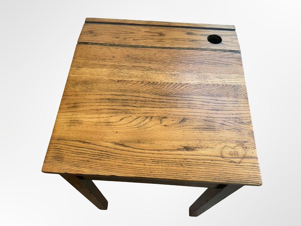 Vintage Sacred Heart School Desk with Lift-Top Storage