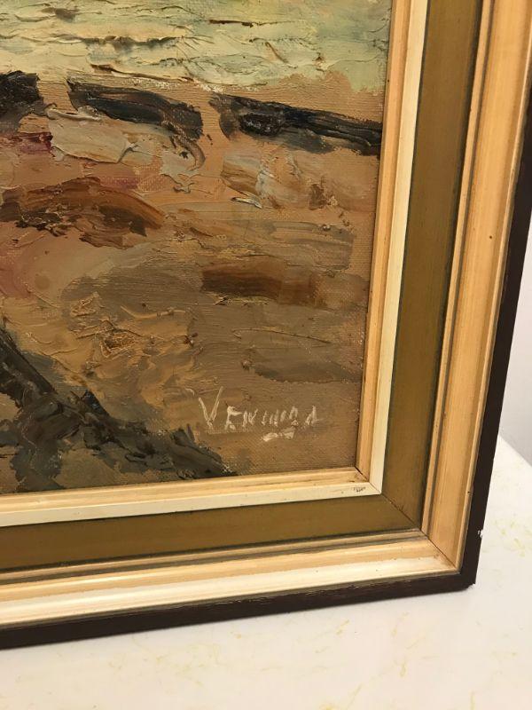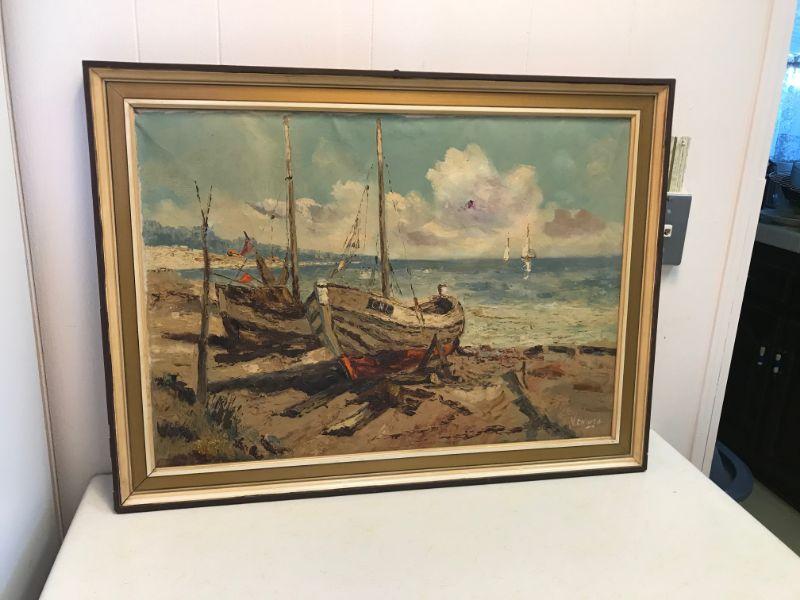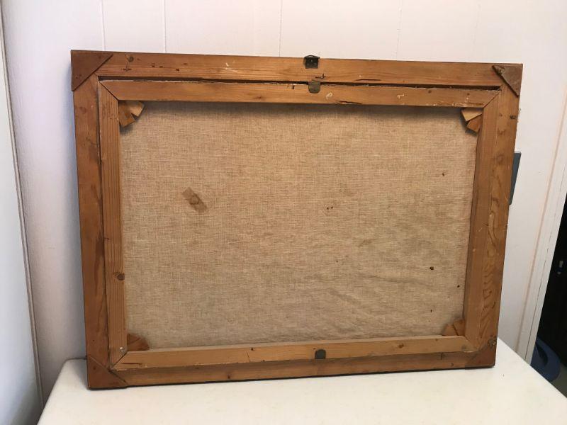 It's in fair used condition, there are a few holes in the canvas, see pictures for condition issues. Signed
