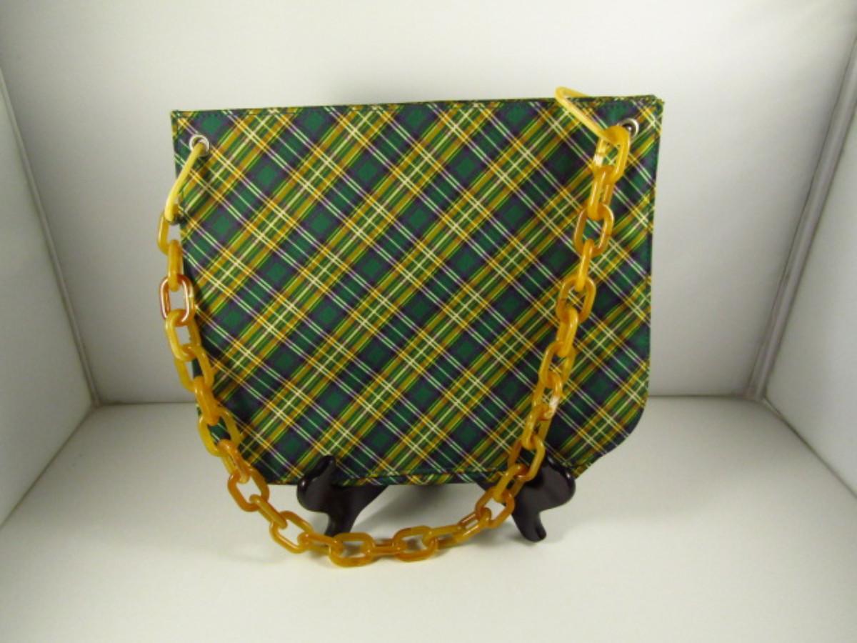 Vintage Saks Fifth Ave Italian Plaid Shoulder Bag with Plastic Chain Strap