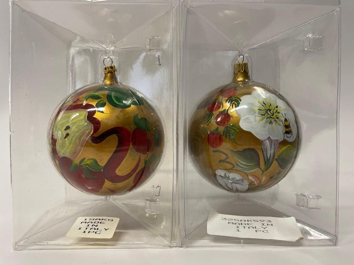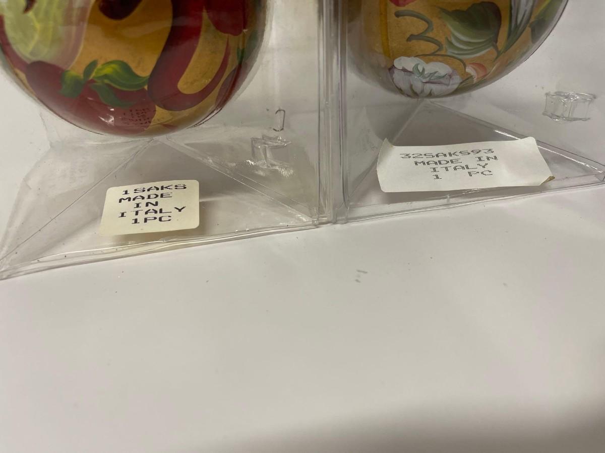Vintage Saks Fifth Avenue Hand Painted Annual Christmas Holiday Ornaments, 1992 & 1993