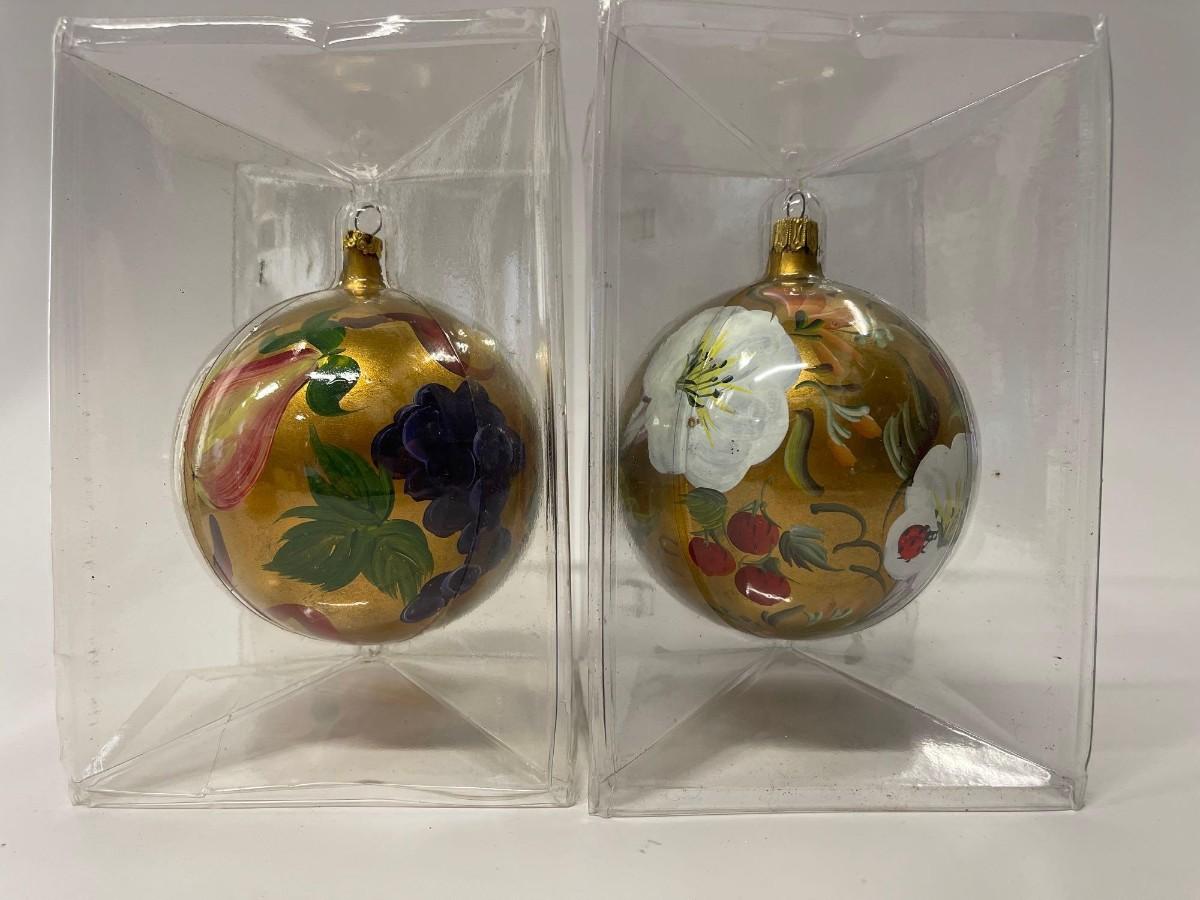 Vintage Saks Fifth Avenue Hand Painted Annual Christmas Holiday Ornaments, 1992 & 1993. Very good condition. 4” each.